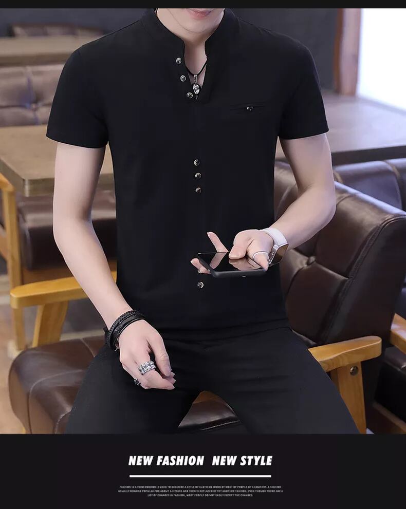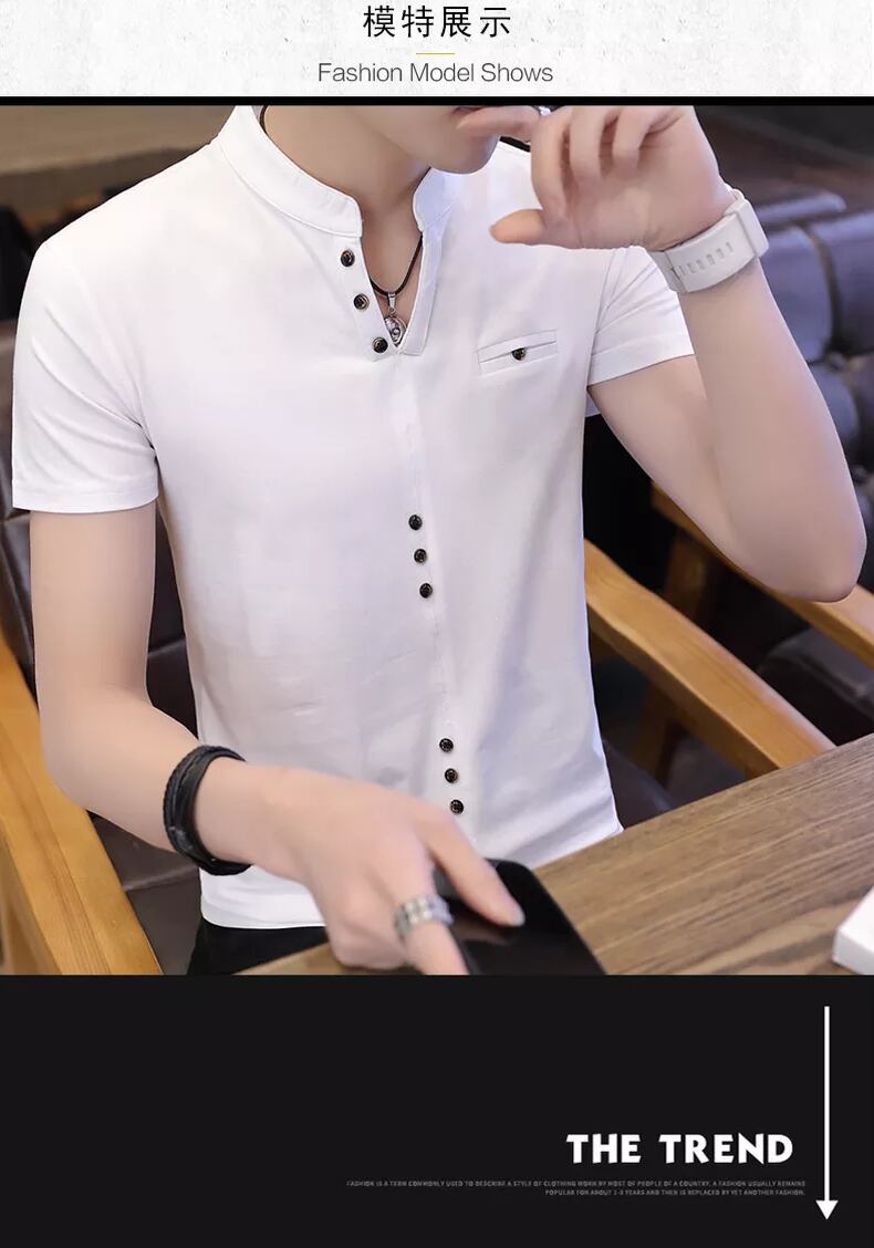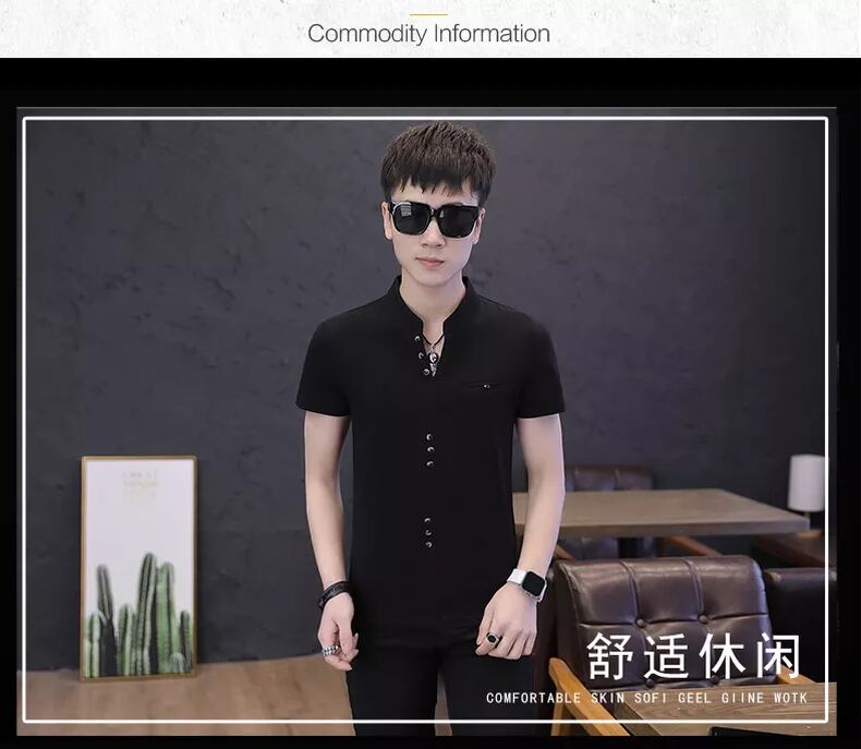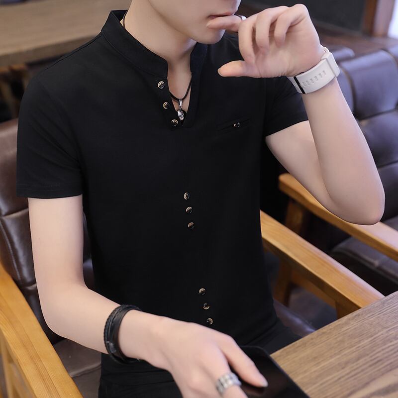 2022 new trend short-sleeved t-shirt men's summer V-neck cotton men's version t-shirt half-sleeve stand-up collar clothes コットン サマー 夏物 Vネック Tシャツ doushi30170417603