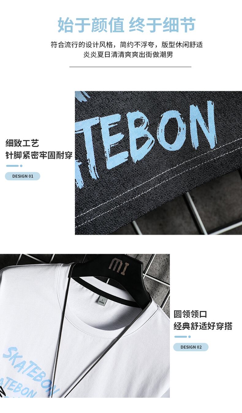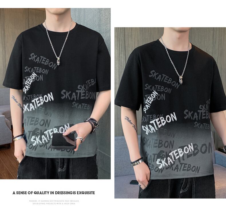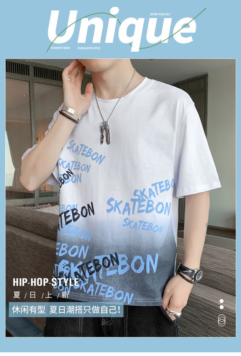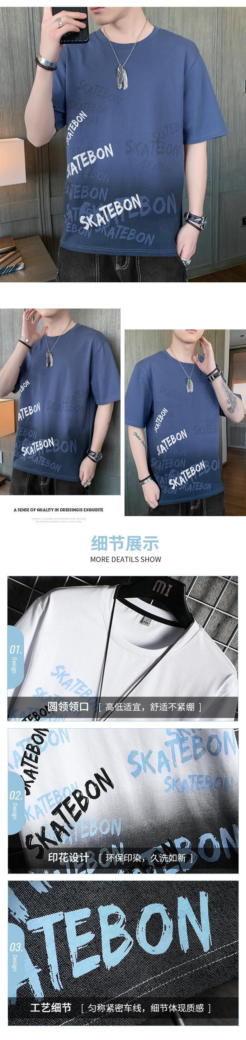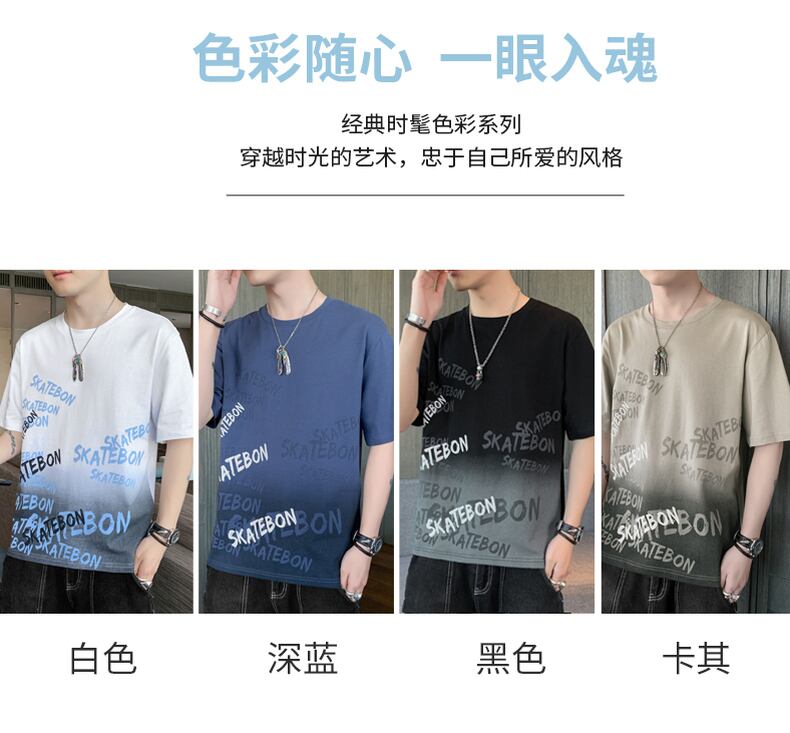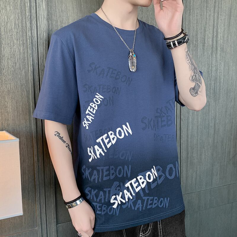 2022 new short-sleeved men's t-shirt slim cotton youth trend round neck large size top all-match handsome t-shirt コットン 大きめサイズ Oネック スリム Tシャツ doushi85783015983