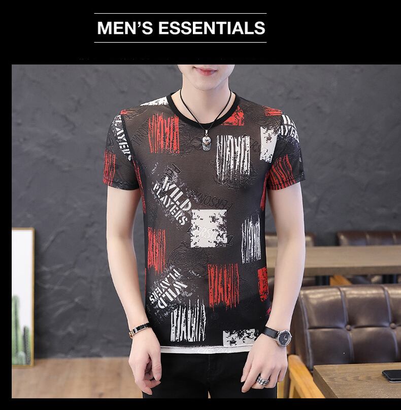 Ice silk t-shirt men's short-sleeved summer round neck collar color clothes youth clothing trend hollow printing quick-drying T-shirt サマー 夏物 Oネック シルク Tシャツ doushi91685736817