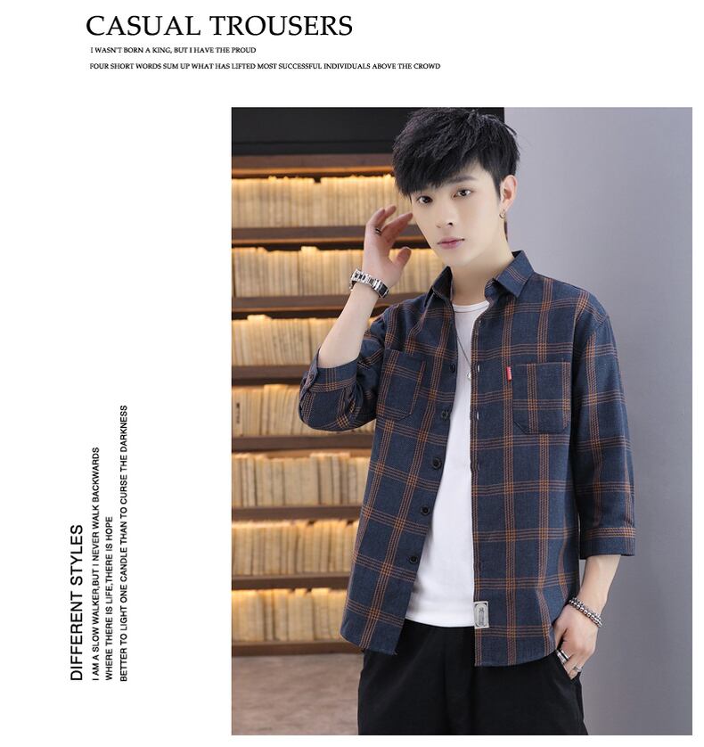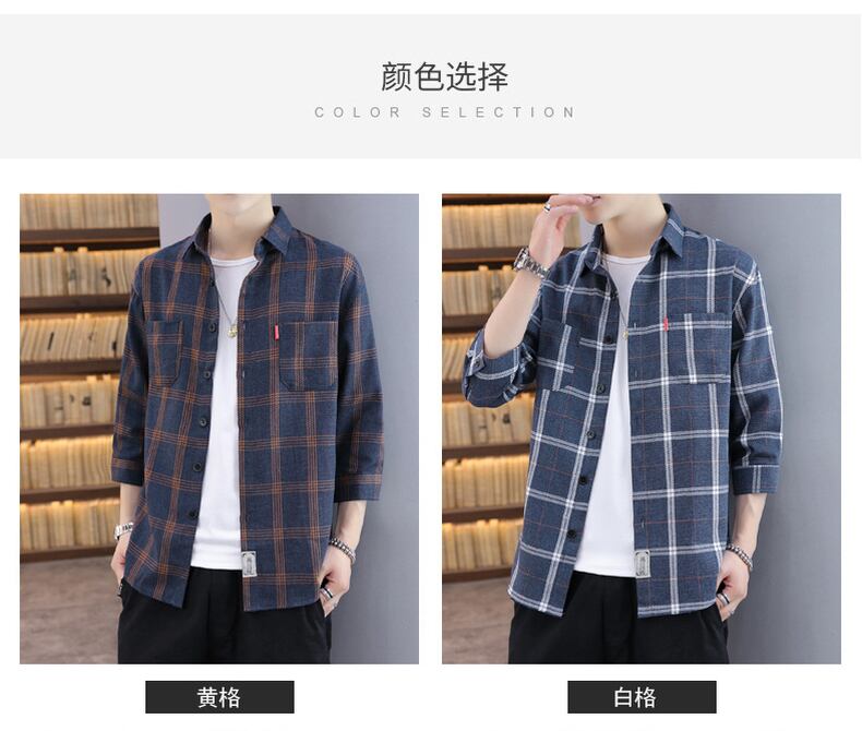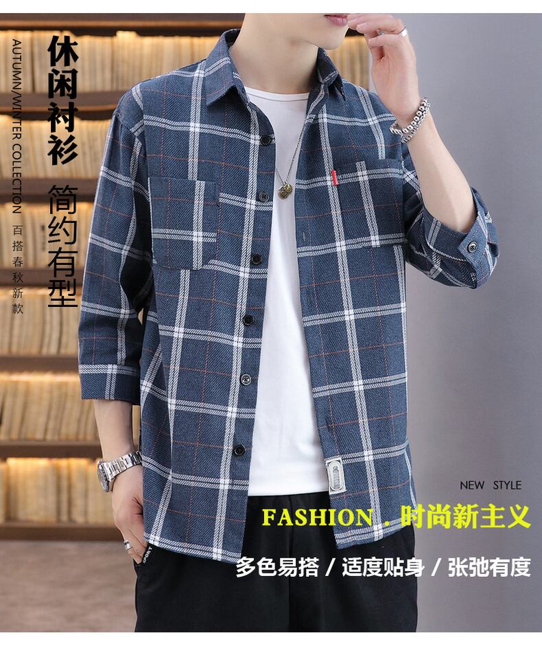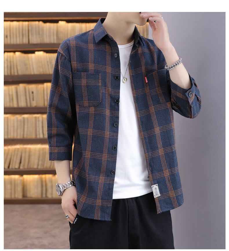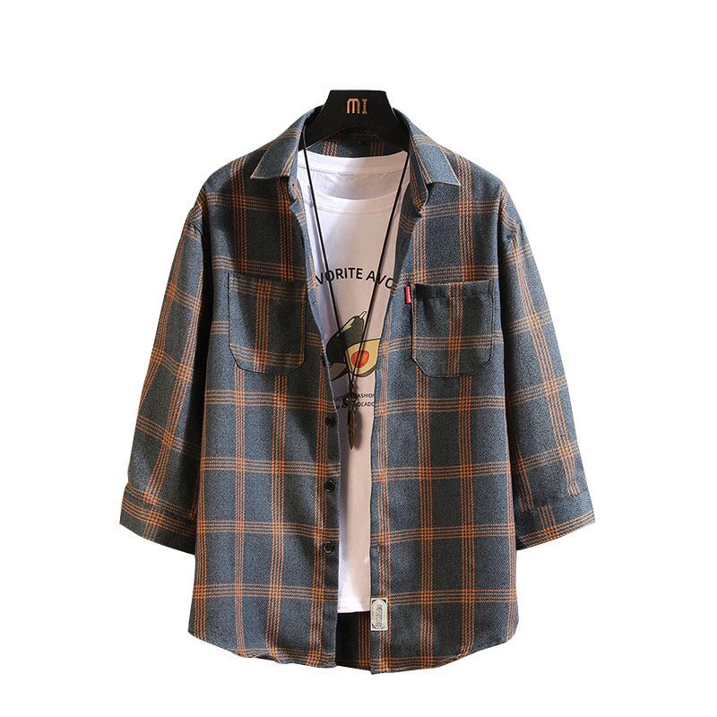 Plaid shirt men's long-sleeved summer thin section trendy handsome men's shirt coat loose casual inch shirt top clothes ロング カジュアル サマー 夏物 doushi20337234879