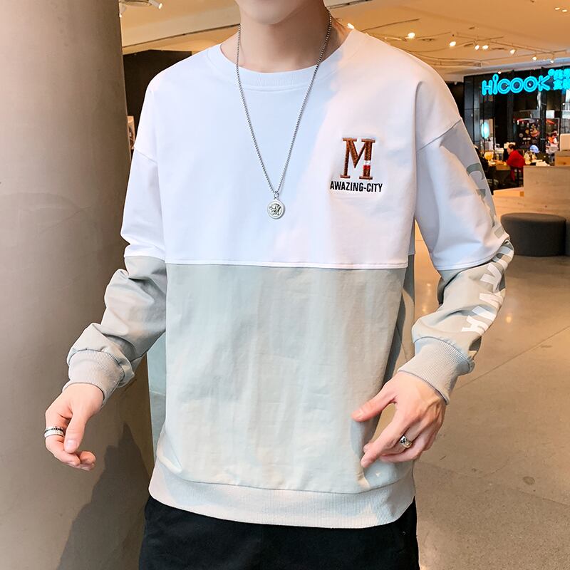 Men's long-sleeved T-shirt spring round neck autumn clothes trend bottoming shirt top clothes junior high students plus velvet sweater ロング スプリング 春物 オータム 秋物 Oネック Tシャツ doushi45912977853