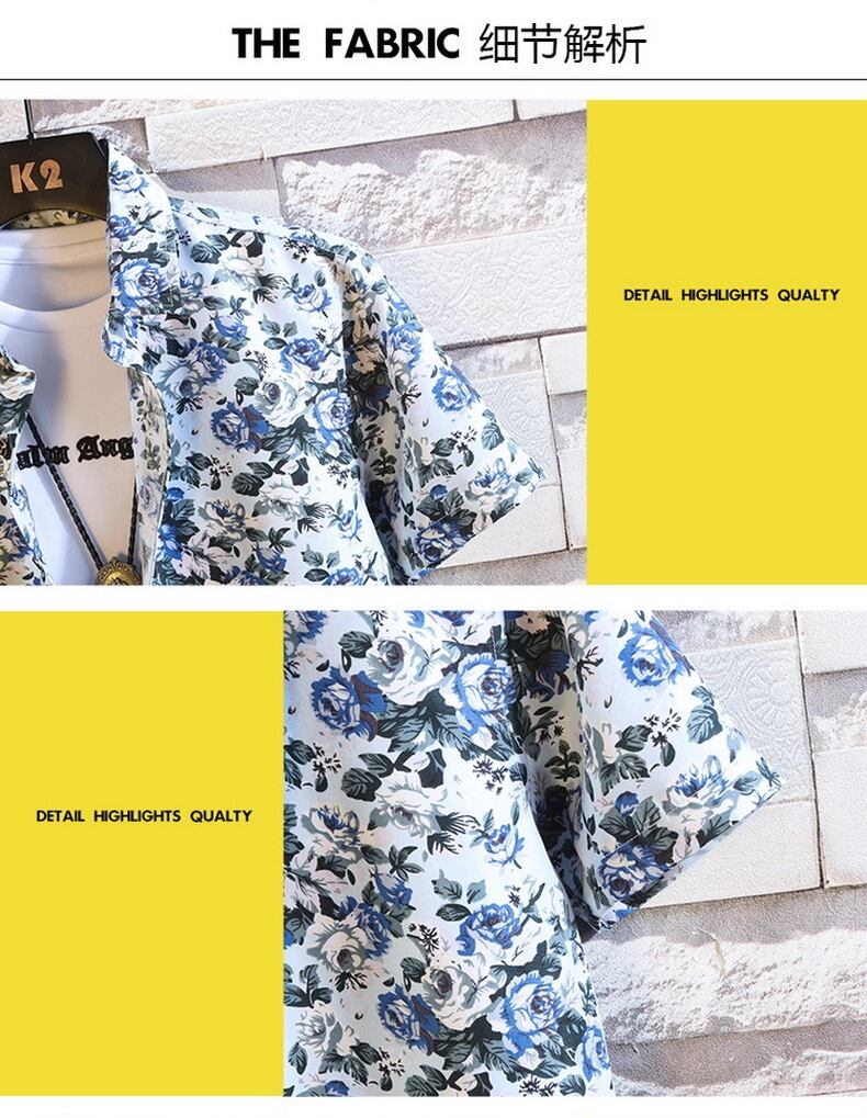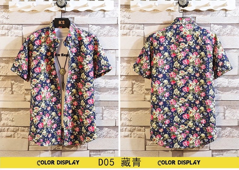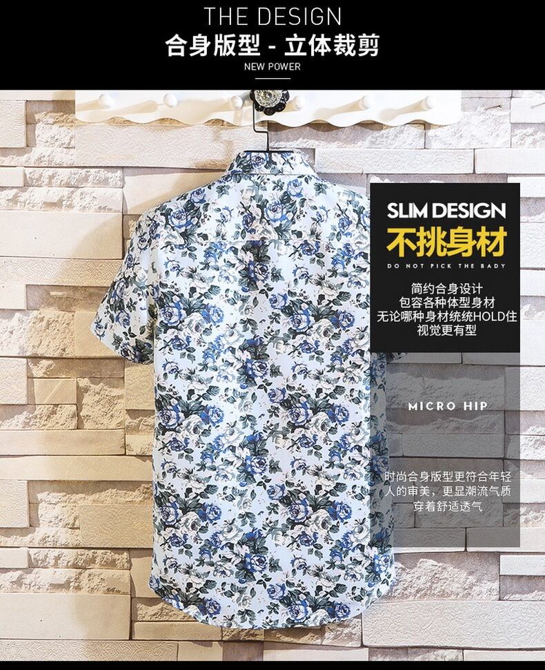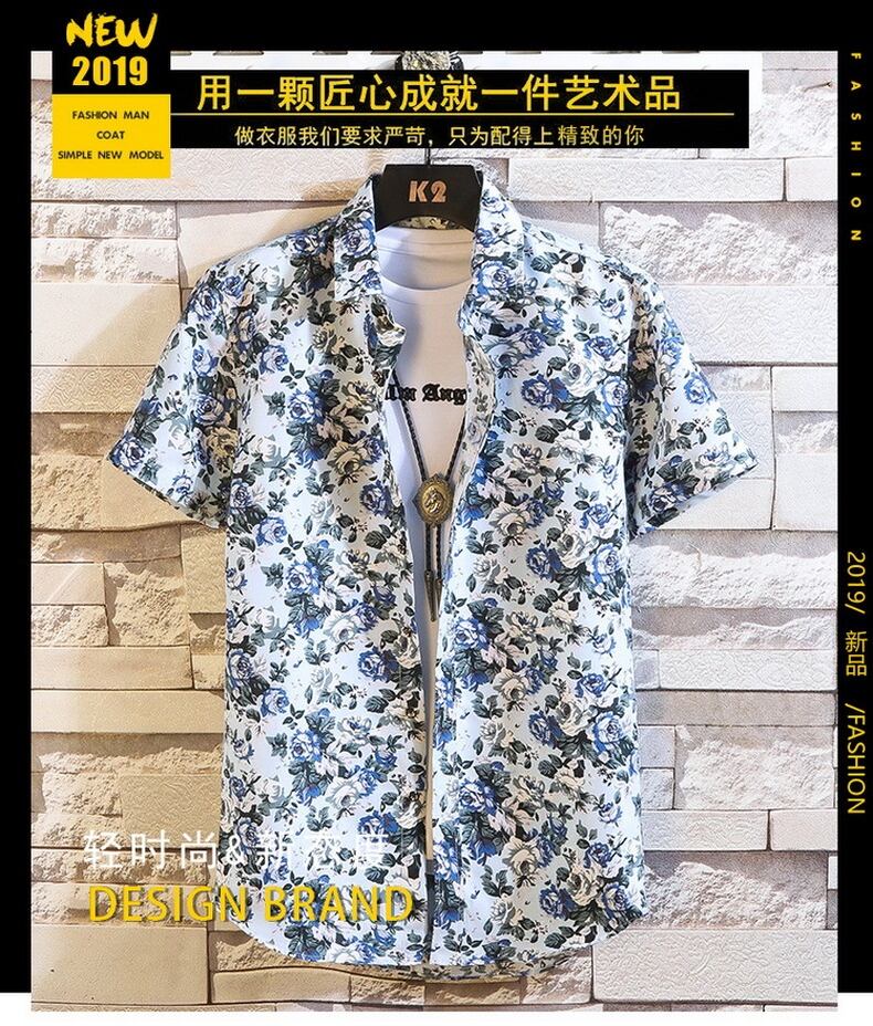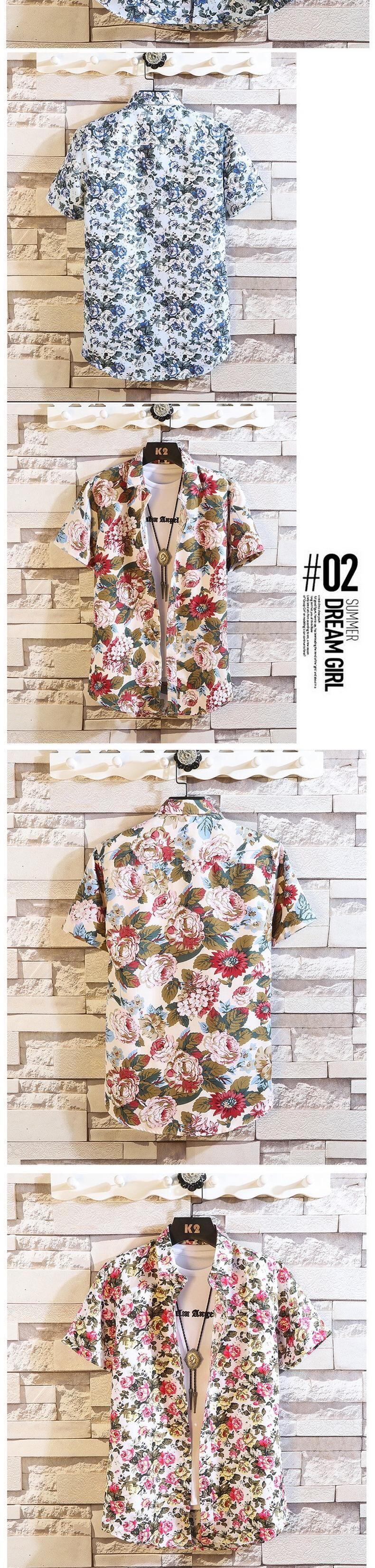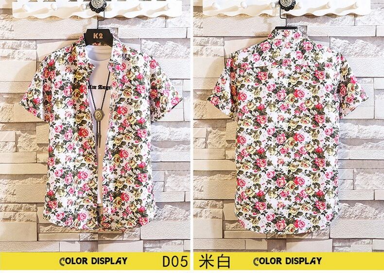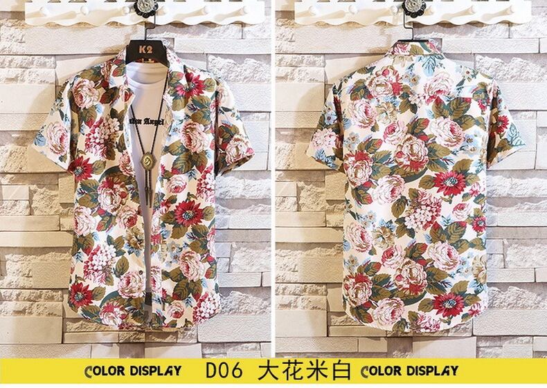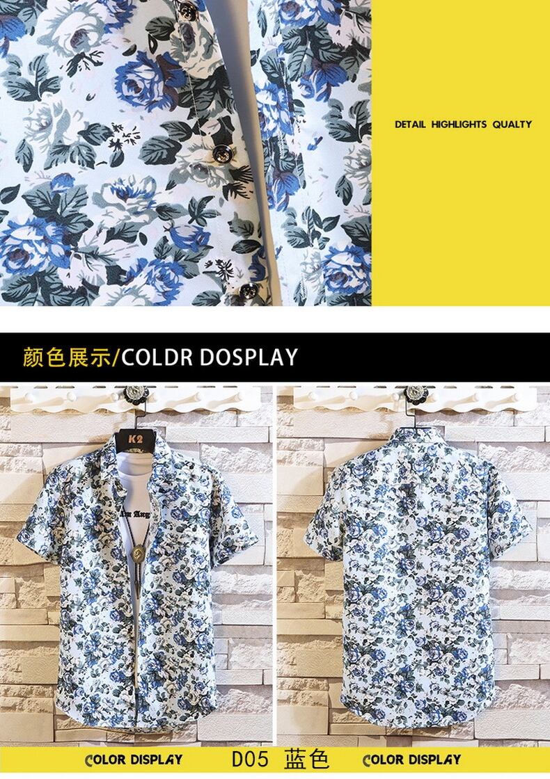 Short-sleeved flower shirt men's summer version of the trend of small daisy floral ruffian handsome net red Thai style beach shirt men レッド サマー 夏物 ビーチ 花柄 フラワーデザイン doushi60765152330