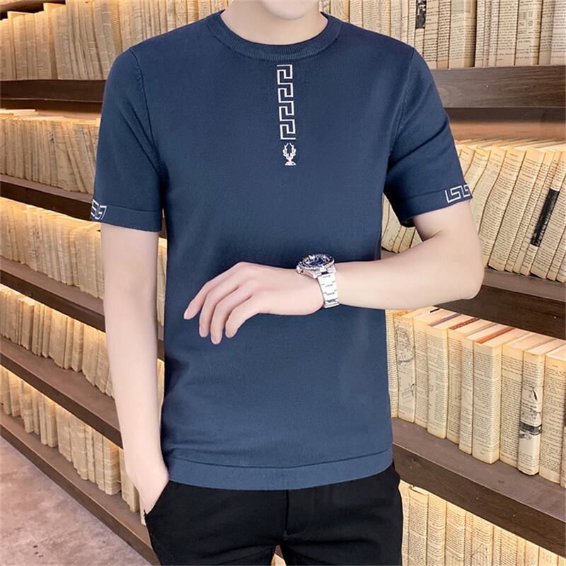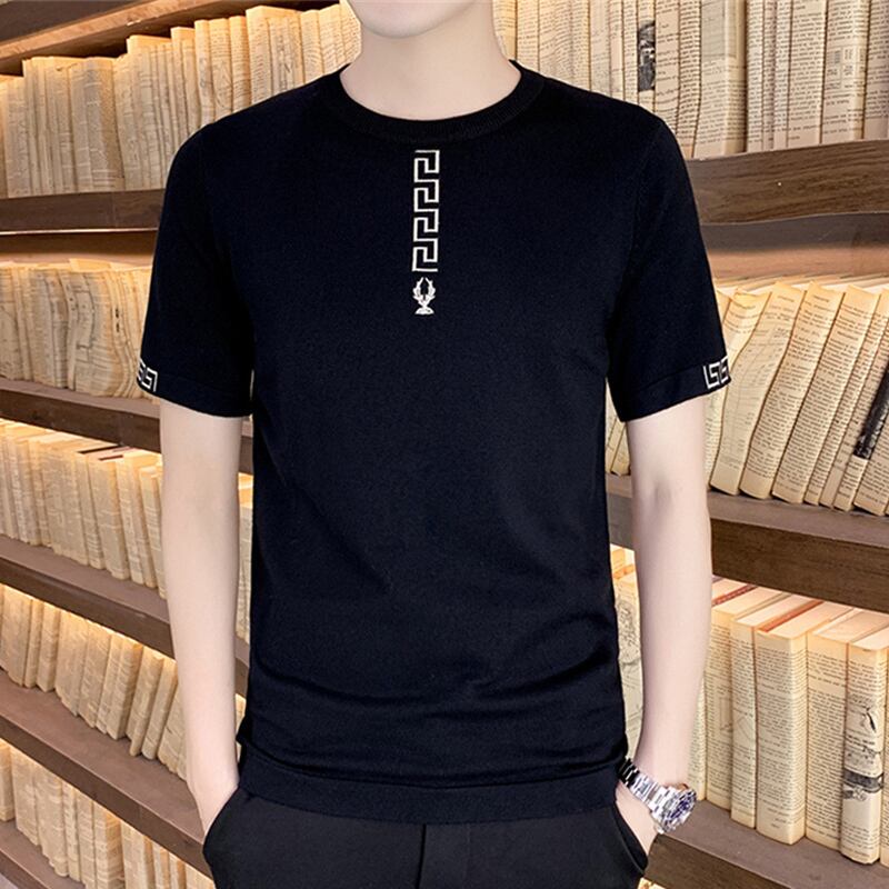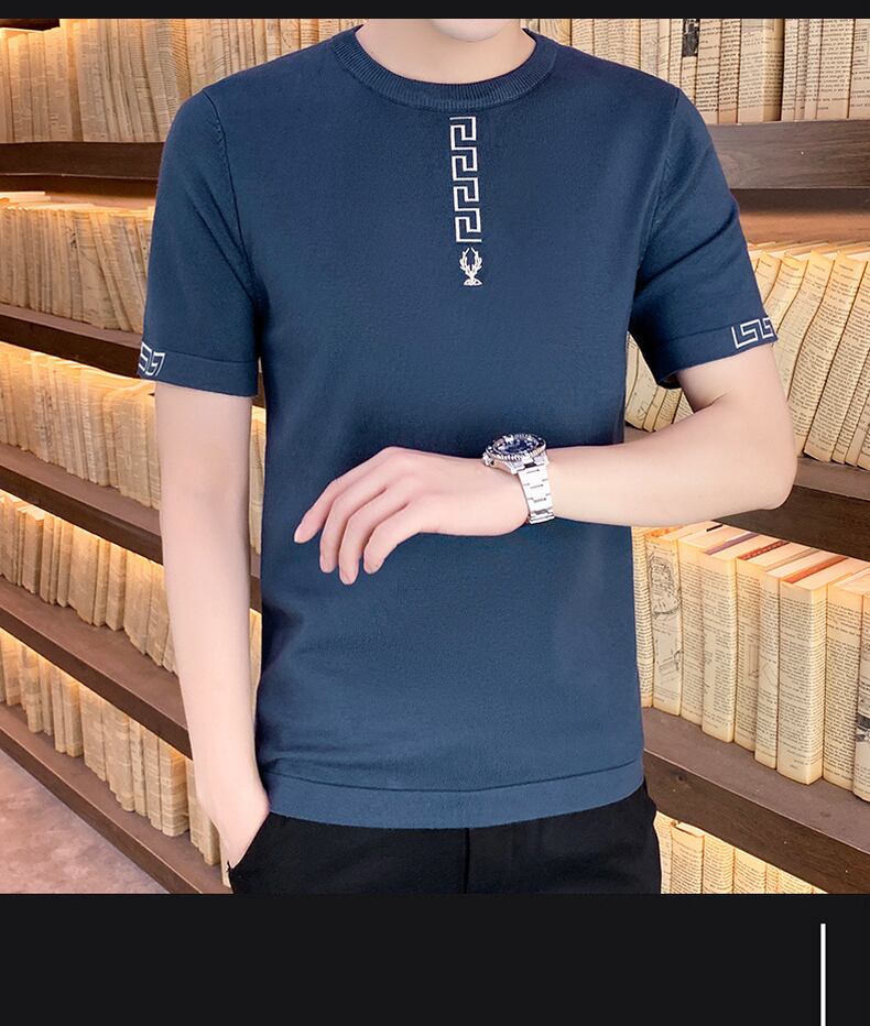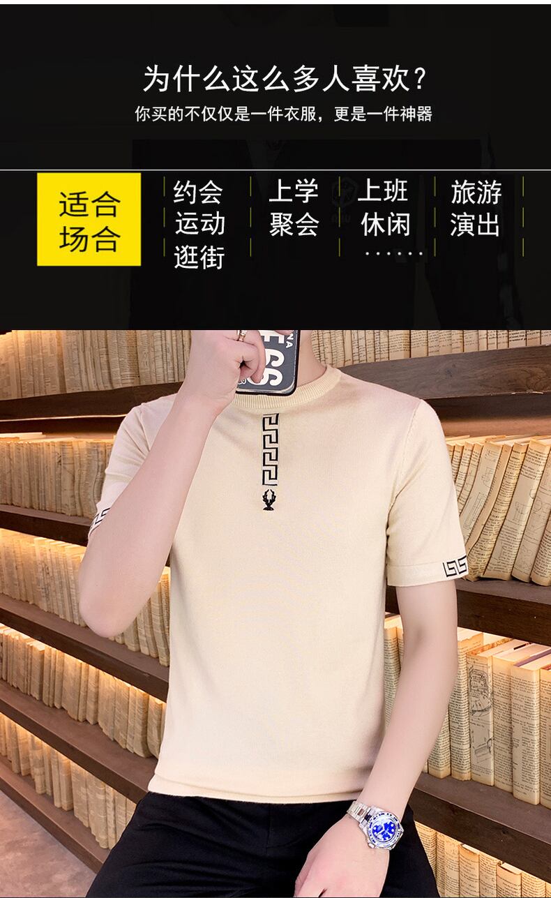 2022 new handsome short-sleeved men's t-shirt spring and autumn bottoming shirt trend half-sleeved ice silk round neck pullover スプリング 春物 オータム 秋物 Oネック シルク Tシャツ doushi22558254927