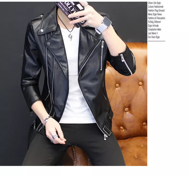 Youth personality short leather men's version of the motorcycle leather jacket trend spring and autumn handsome casual thin coat ショート カジュアル スプリング 春物 オータム 秋物 レザー doushi7303919670