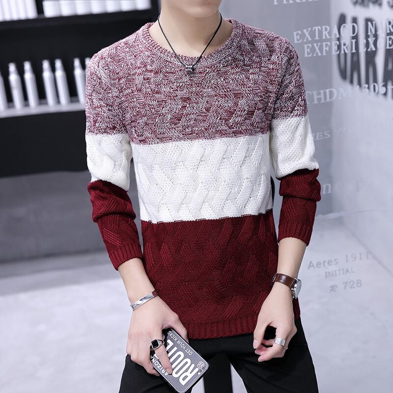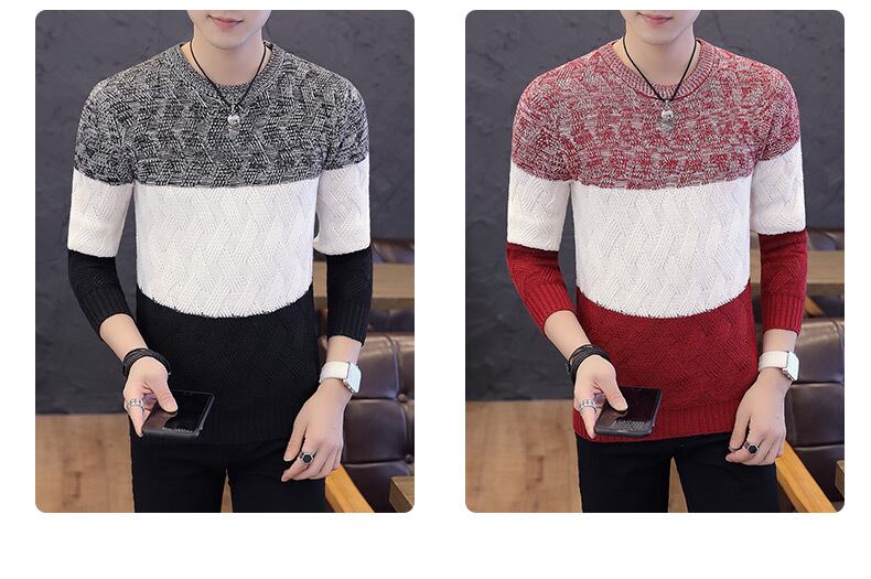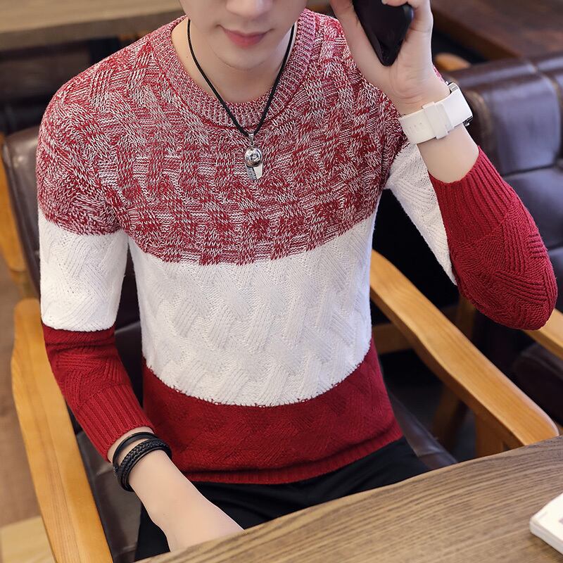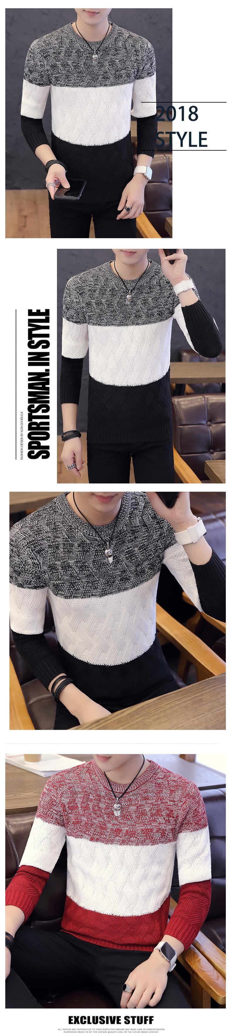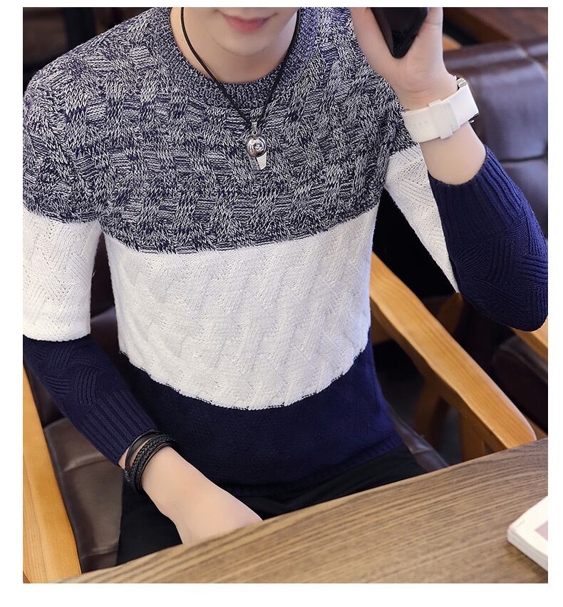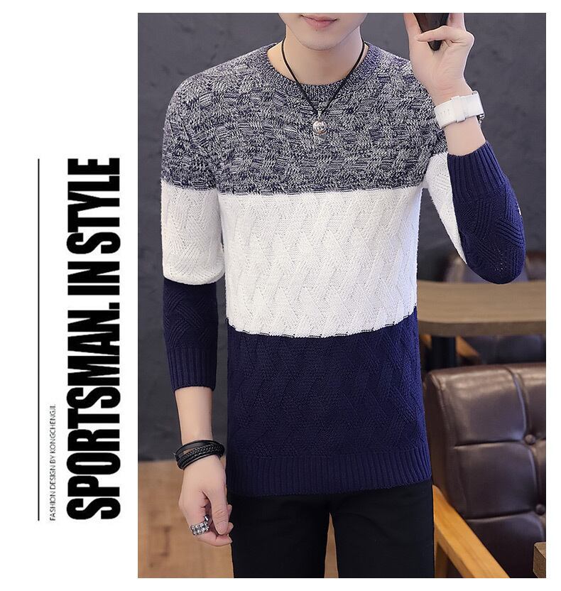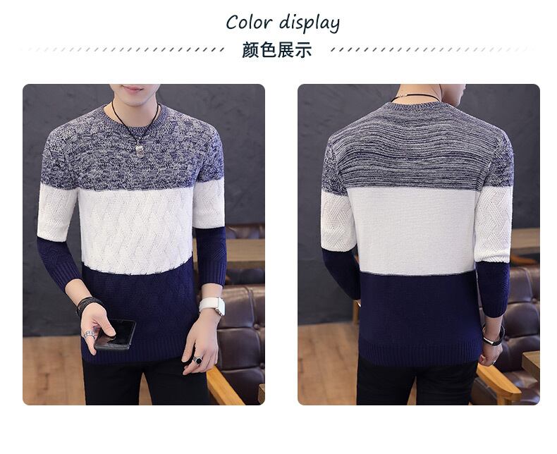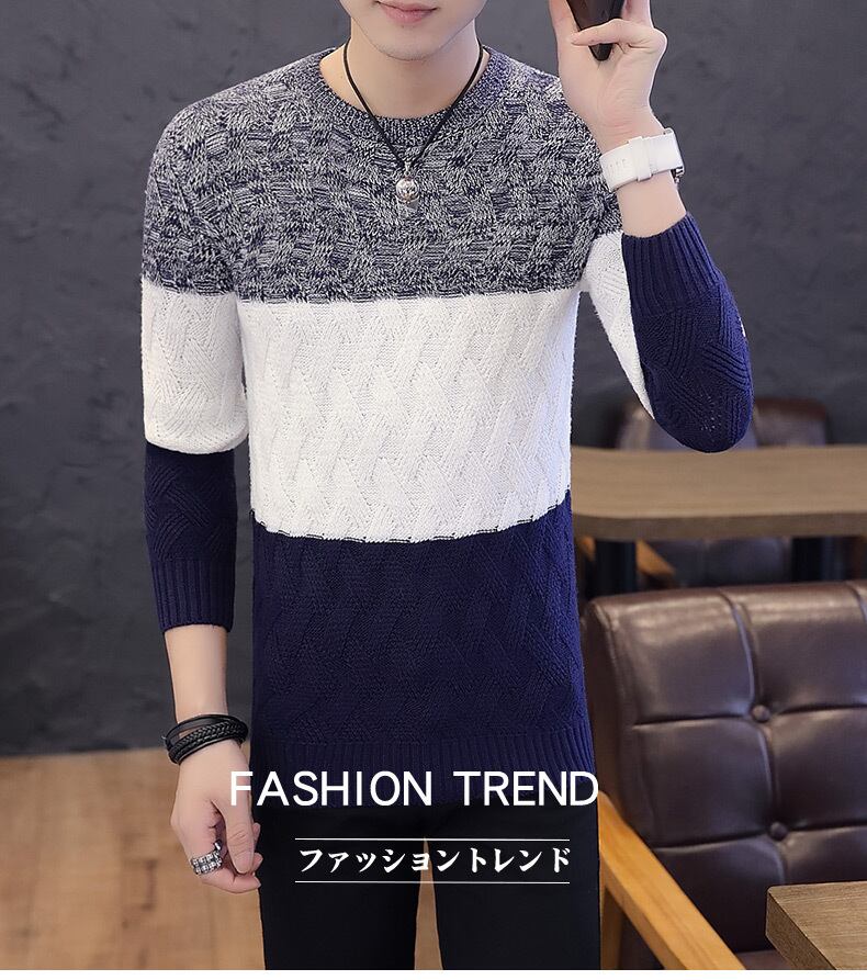 2022 Spring Men's Crewneck Sweater Striped Slim Fit Warm Inside Bottom Shirt Sweater Men's Trend スプリング 春物 ストライプ スリム doushi49796300262