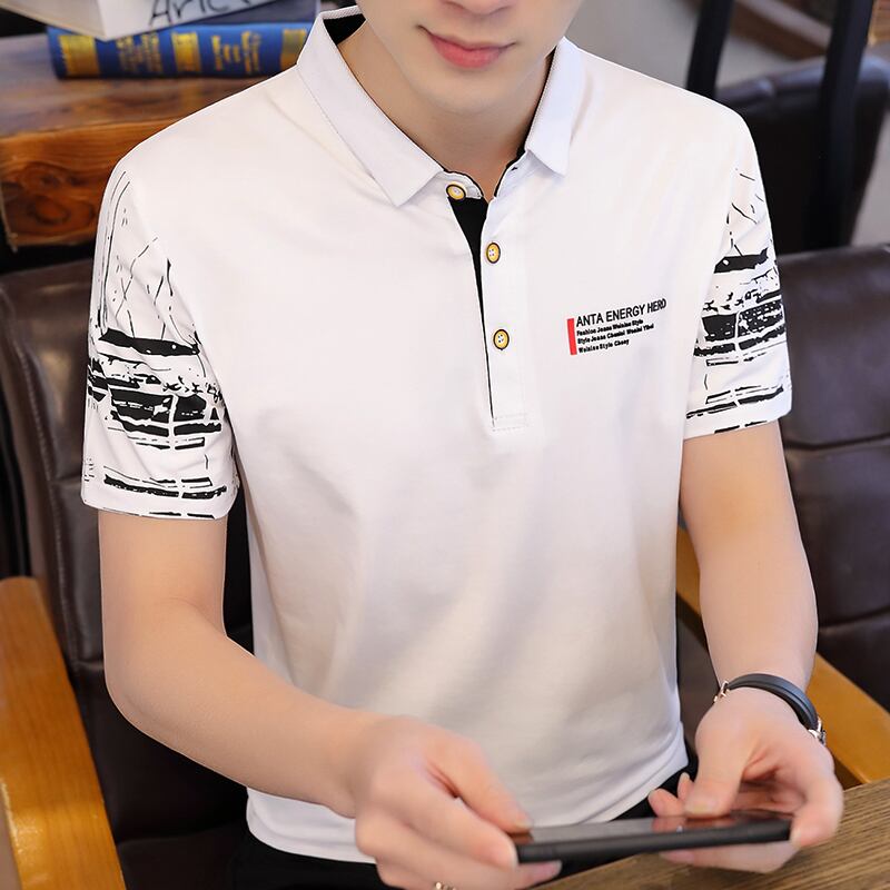 2022 Summer Lapel Cotton Polo Shirt Men's Short Sleeve Slim Print Youth Student T-Shirt Bottom ショート コットン 半袖 ハーフスリーブ サマー 夏物 スリム Tシャツ doushi77134608724