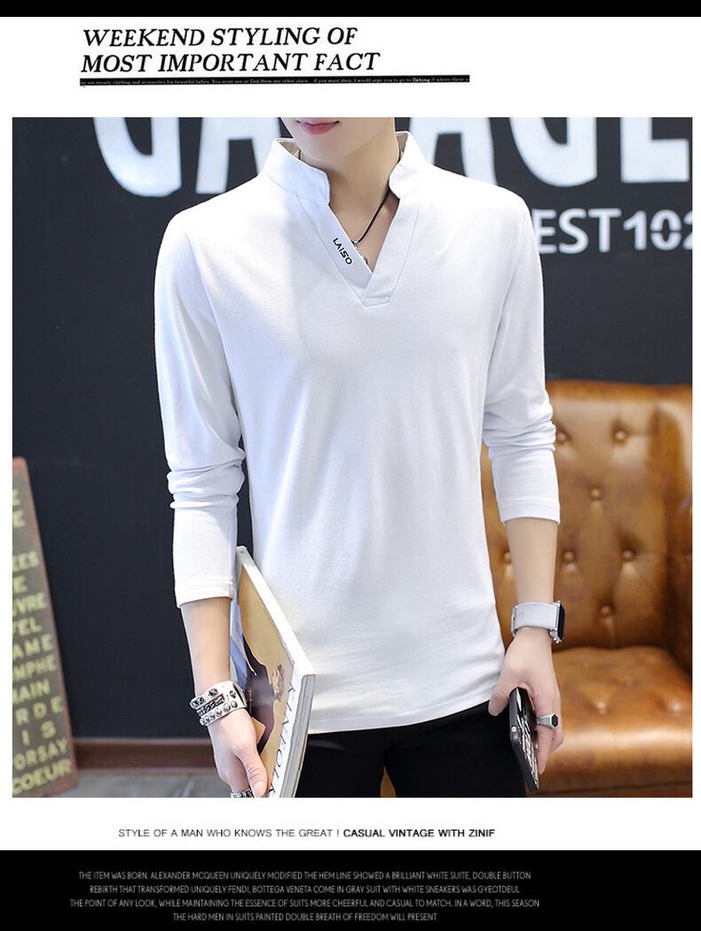 Long-sleeved t-shirt men's spring and autumn version trend casual handsome men's stand-up collar top v-neck slim bottoming shirt ロング カジュアル スプリング 春物 オータム 秋物 Vネック スリム Tシャツ doushi3798922510