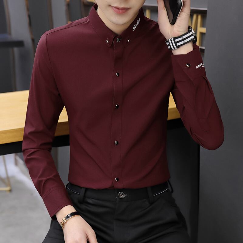 Spring and autumn white shirt men's long-sleeved slim men's shirt business casual iron-free ruffian handsome inch shirt trend ロング ホワイト カジュアル スプリング 春物 オータム 秋物 スリム doushi37709303246