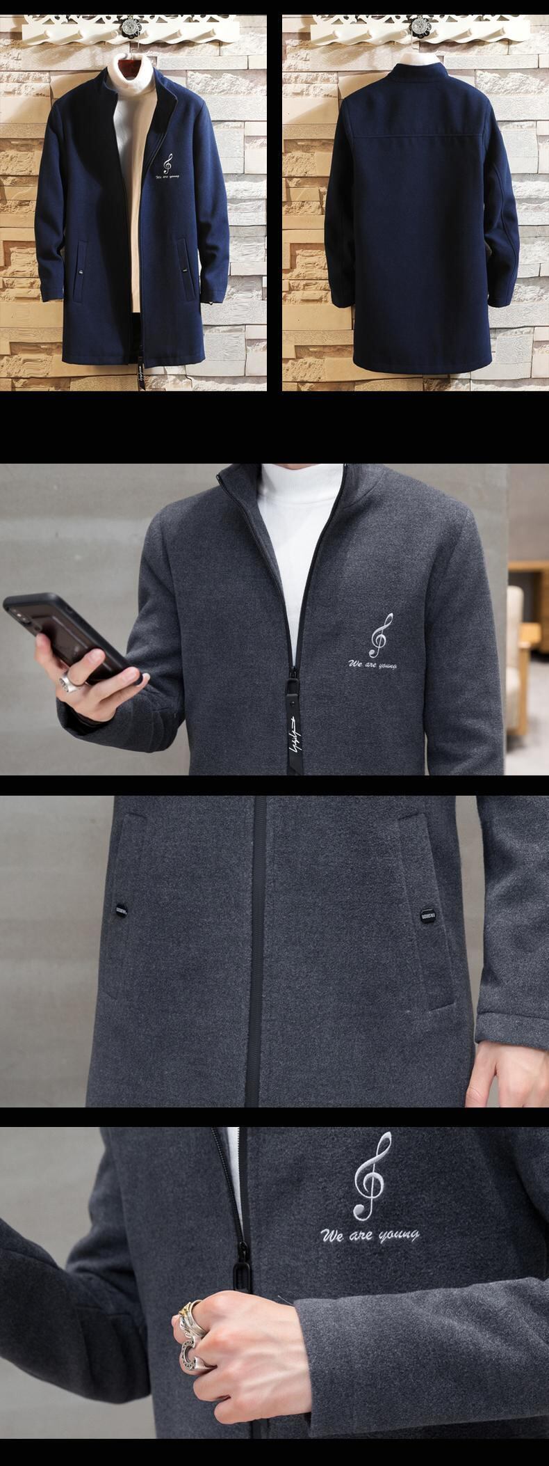 2022 new woolen coat men's mid-length version trend slim men's windbreaker autumn and winter woolen coat thickening オータム 秋物 ウィンター 冬物 スリム doushi86831357485