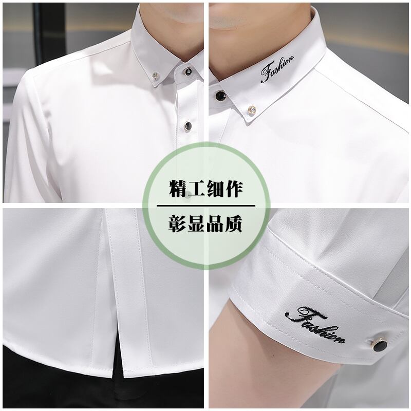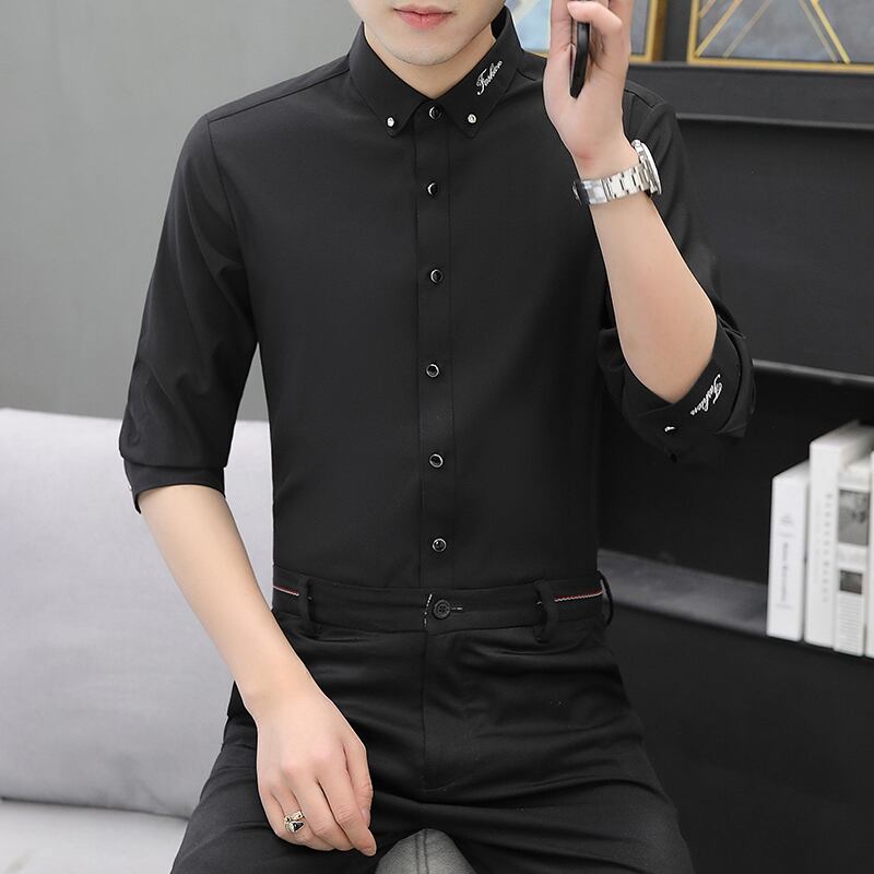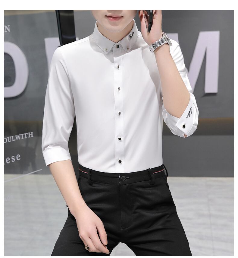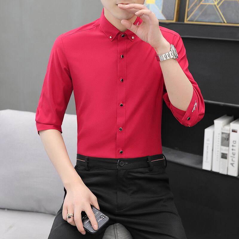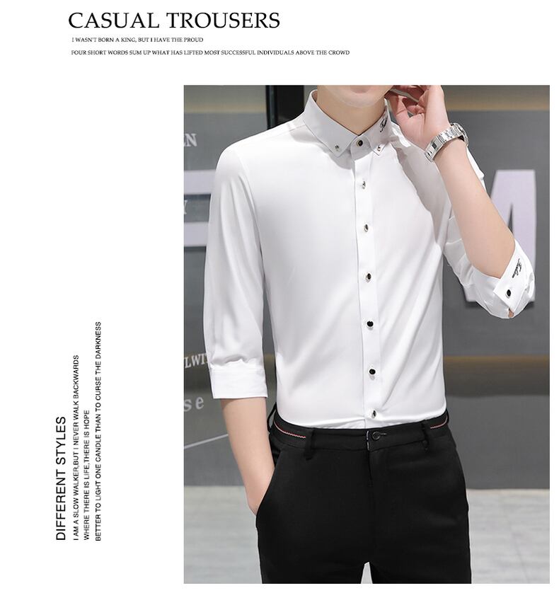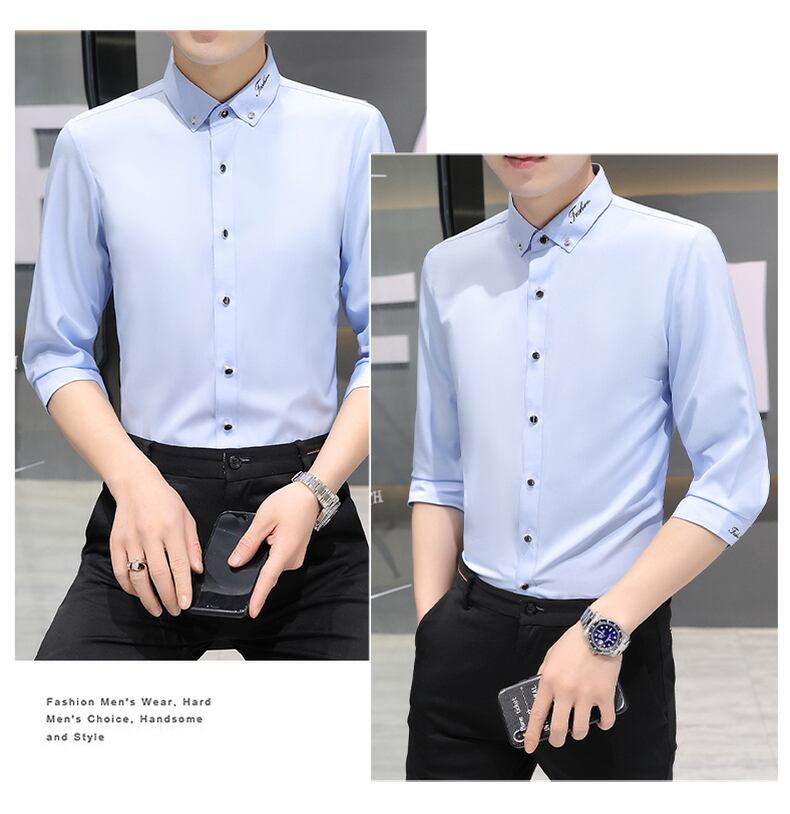 Ice silk shirt men's short-sleeved ruffian handsome summer thin breathable mid-sleeve men's self-cultivation high-end shirt three-quarter sleeves サマー 夏物 シルク doushi56357899143