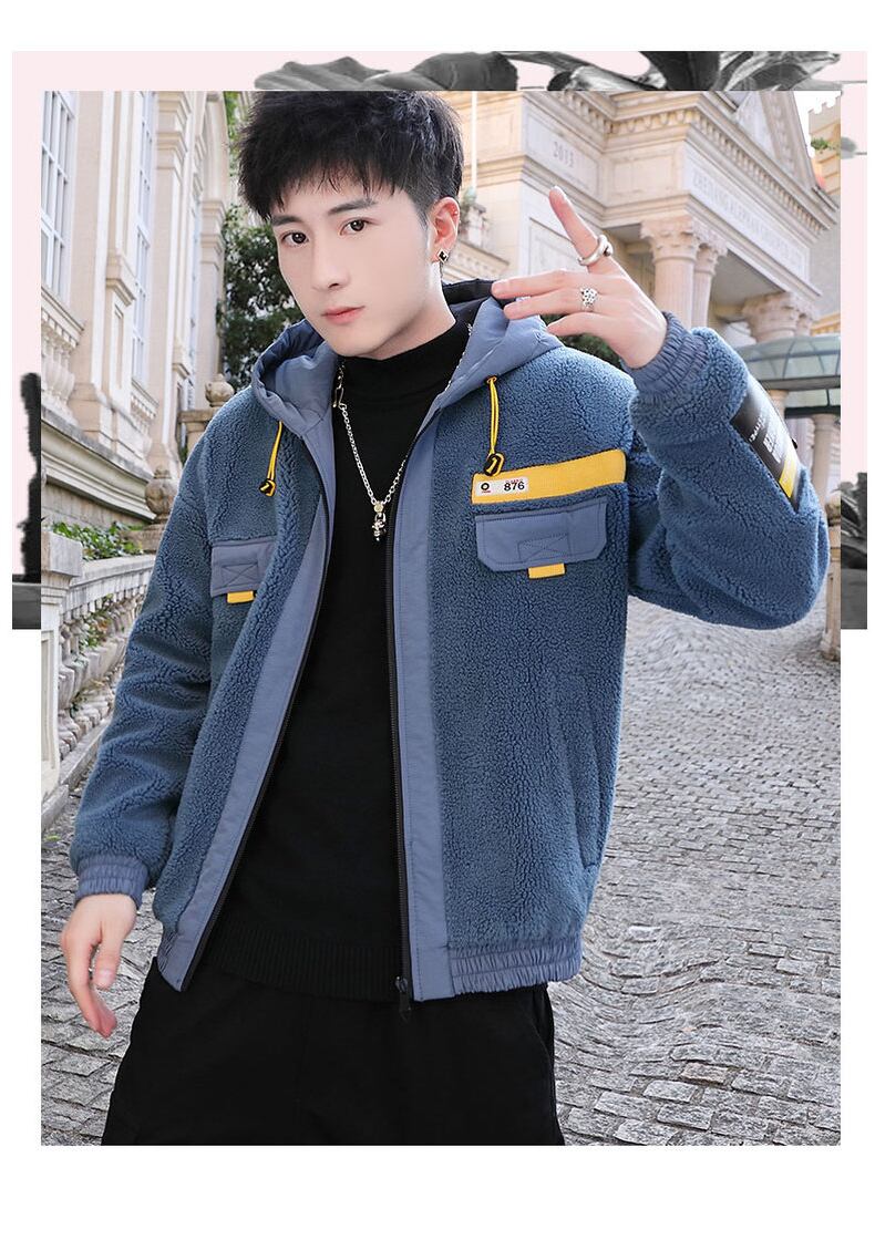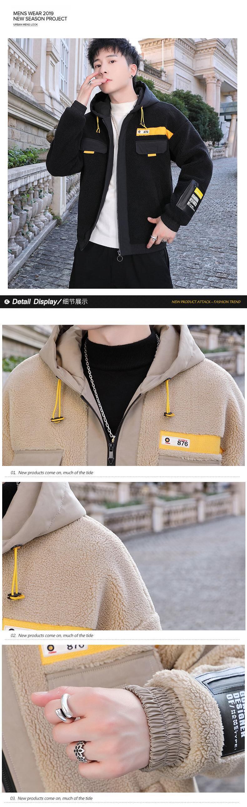 Winter grain velvet cotton coat men's hooded thickened student lamb wool jacket youth handsome warm plus velvet clothes コットン ウィンター 冬物 doushi85993759336