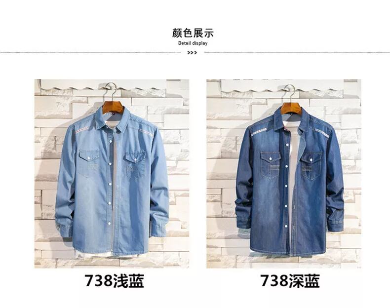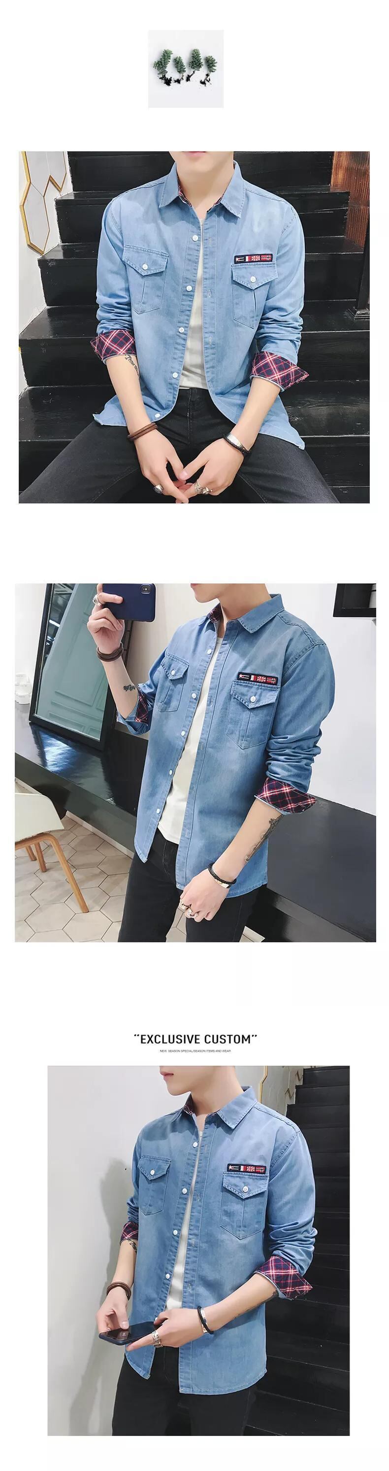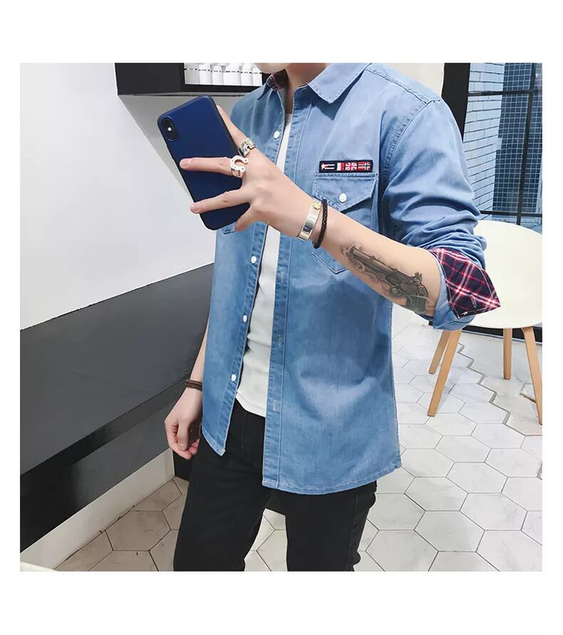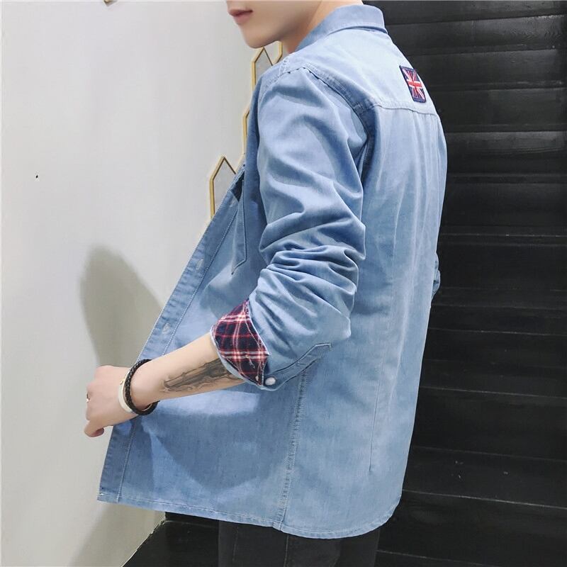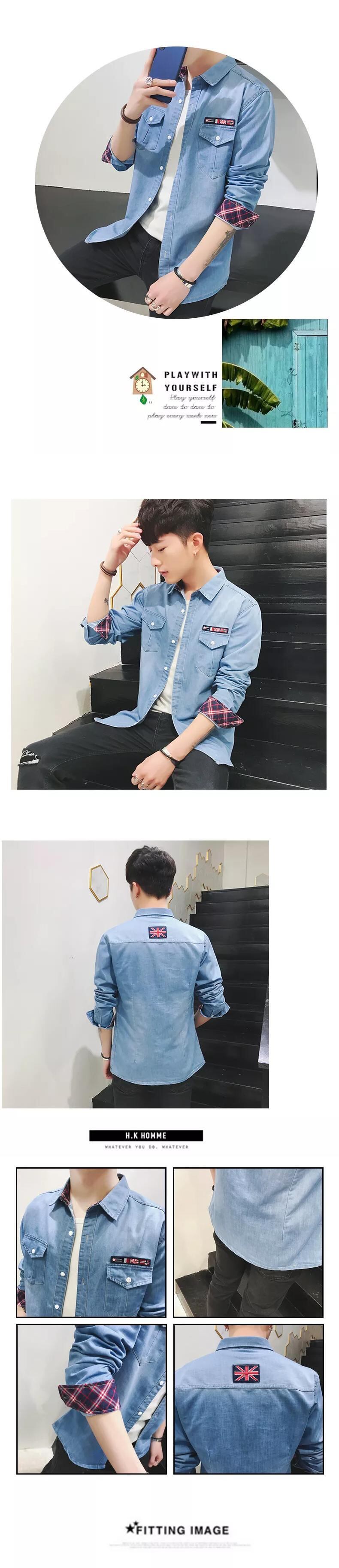 Autumn denim shirt men's youth slim long-sleeved shirt men's version of the student inch shirt men's jacket winter trendy ロング オータム 秋物 ウィンター 冬物 スリム doushi55353434933