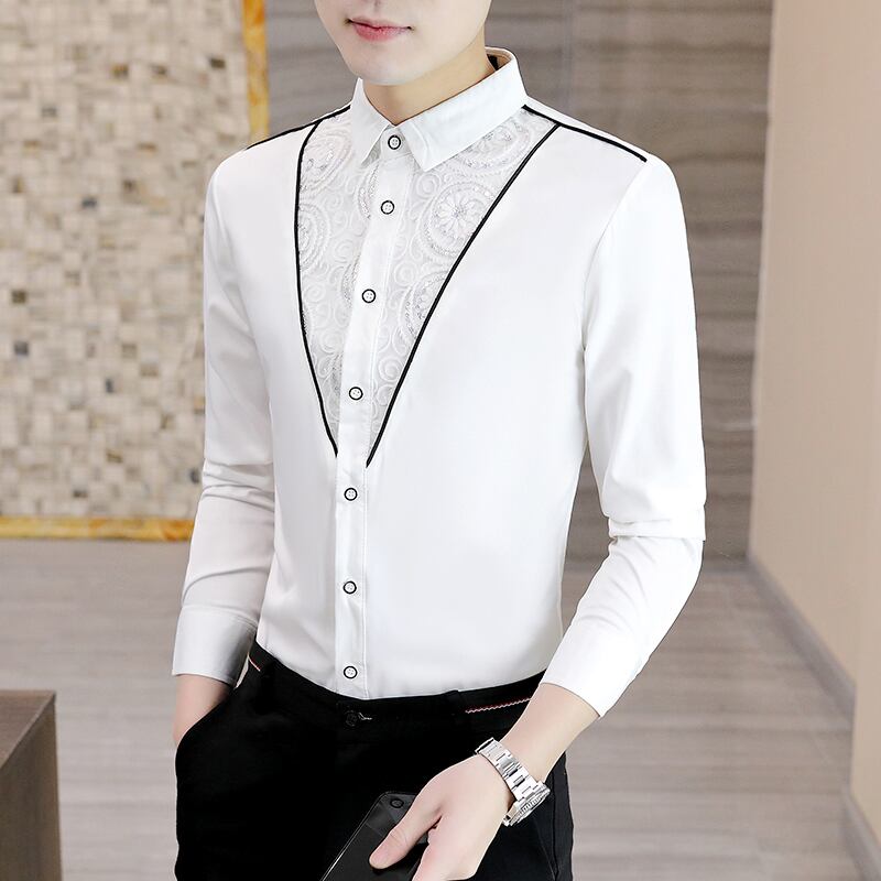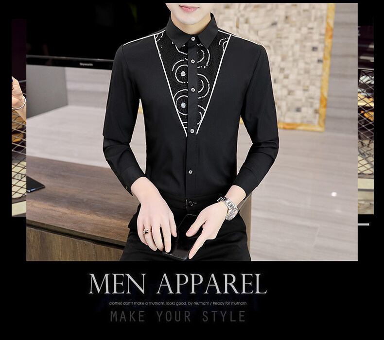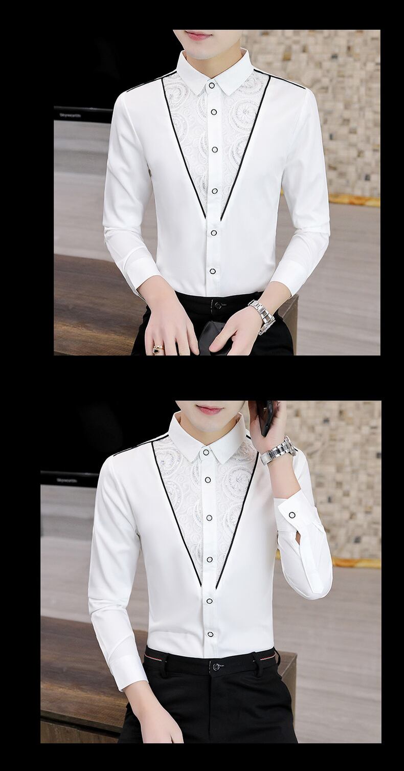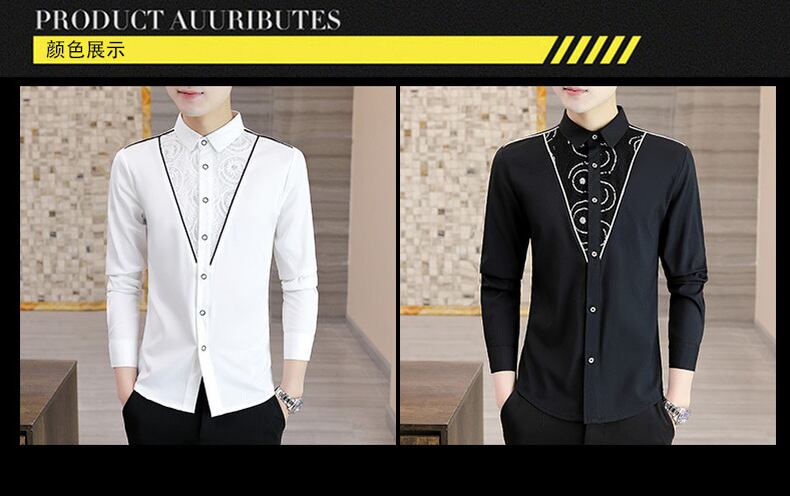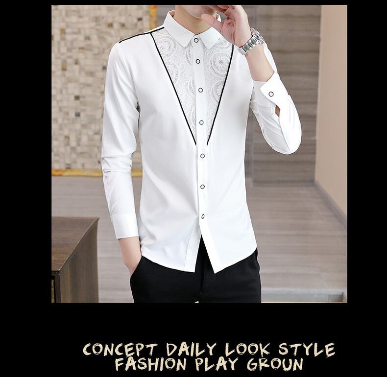 Shirt men's long-sleeved spring and autumn version personality three-quarter-sleeve shirt ins trend summer dress mid-sleeve handsome top ロング スプリング 春物 サマー 夏物 オータム 秋物 doushi1858295518