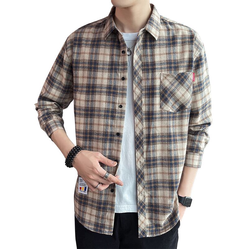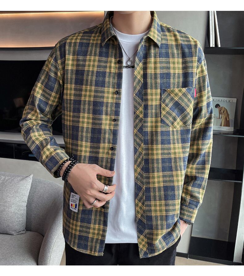 2022 spring and autumn new teen boys long-sleeved plaid shirt men's outer loose autumn trend top ロング スプリング 春物 オータム 秋物 doushi11551530932