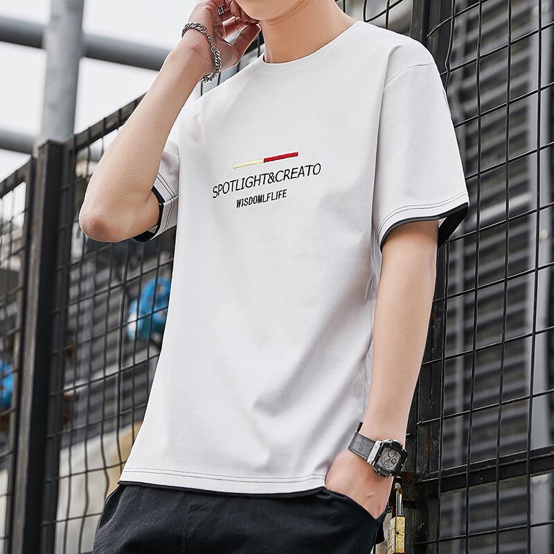 Summer 2022 new short-sleeved t-shirt men's trend T-shirt boys cotton embroidery clothes men's half-sleeve t-shirt men's clothing コットン 刺繍 サマー 夏物 Tシャツ doushi82298433975