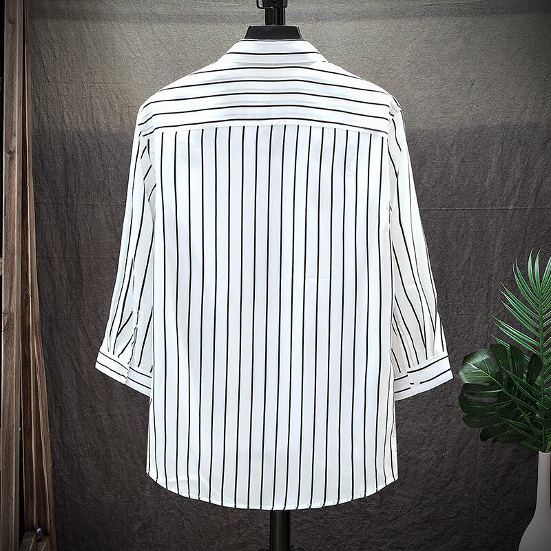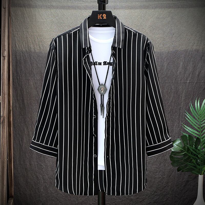 Men's summer dress three-quarter sleeve shirt men's ice silk short-sleeved trend half-sleeve inch shirt summer thin five-point sleeve shirt サマー 夏物 シルク doushi16014731264