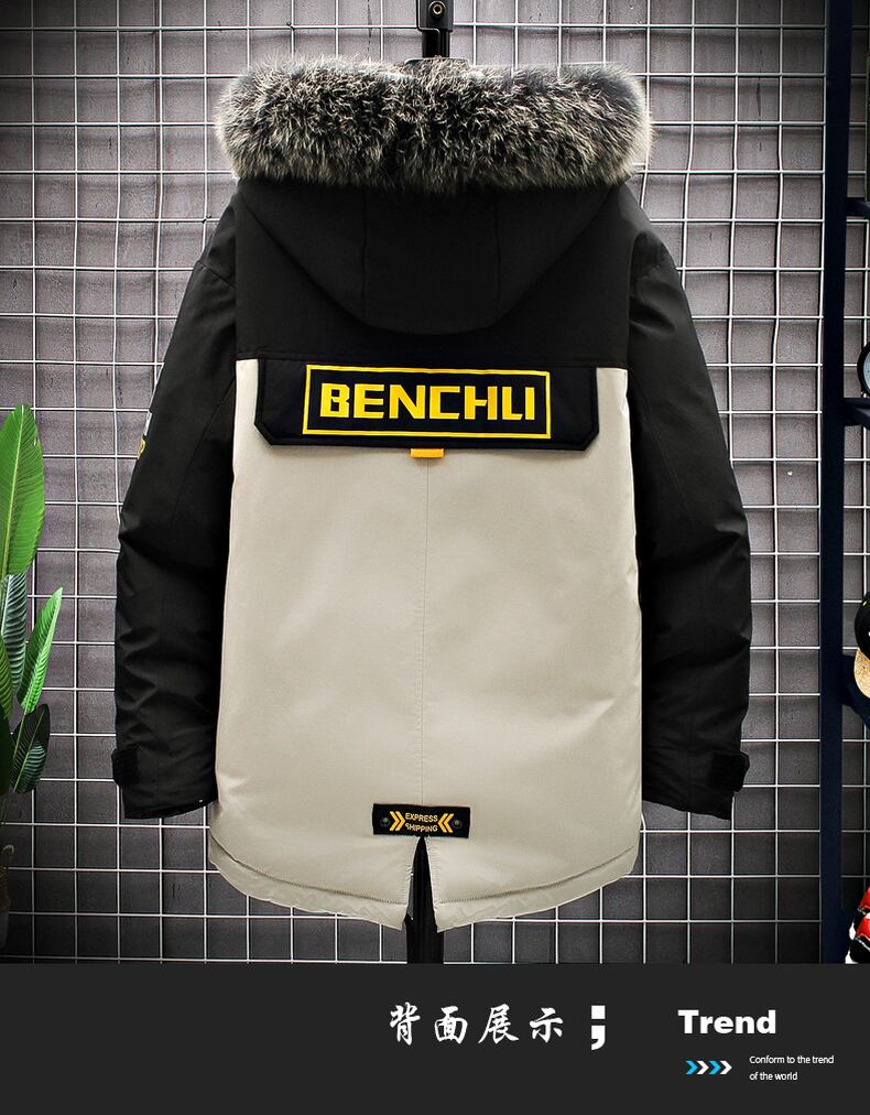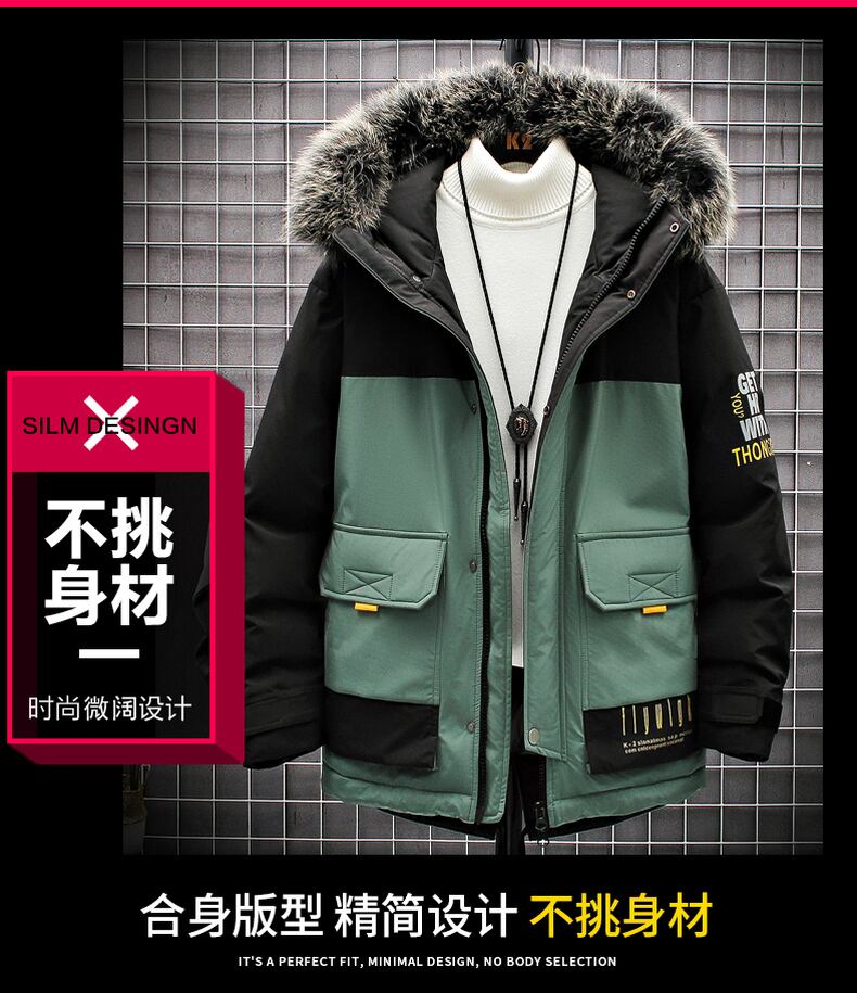Padded men's tide brand loose ins stitching fur collar down padded jacket thickened warm padded jacket handsome winter jacket men ウィンター 冬物 ステッチ doushi10678830702