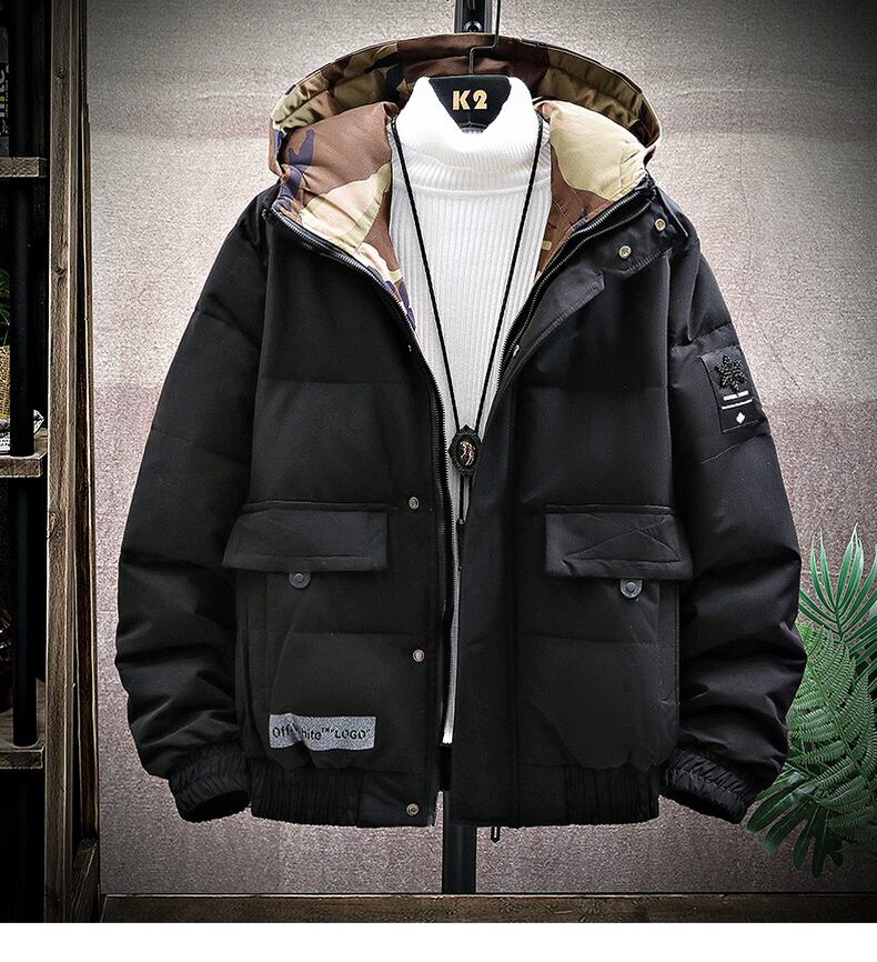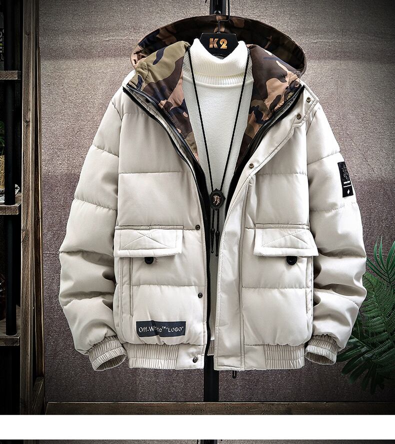 2022 autumn and winter new tooling hooded cotton coat men's short thickened cotton jacket loose warm student cotton clothing trend ショート コットン オータム 秋物 ウィンター 冬物 doushi3906711305