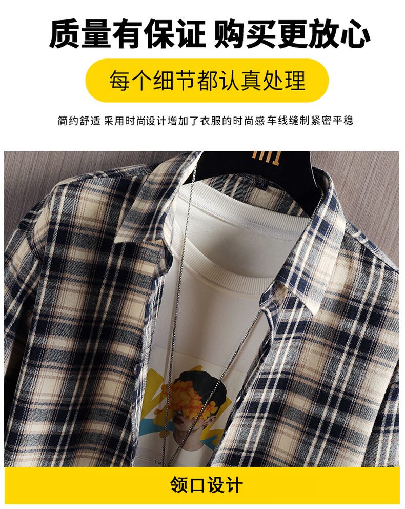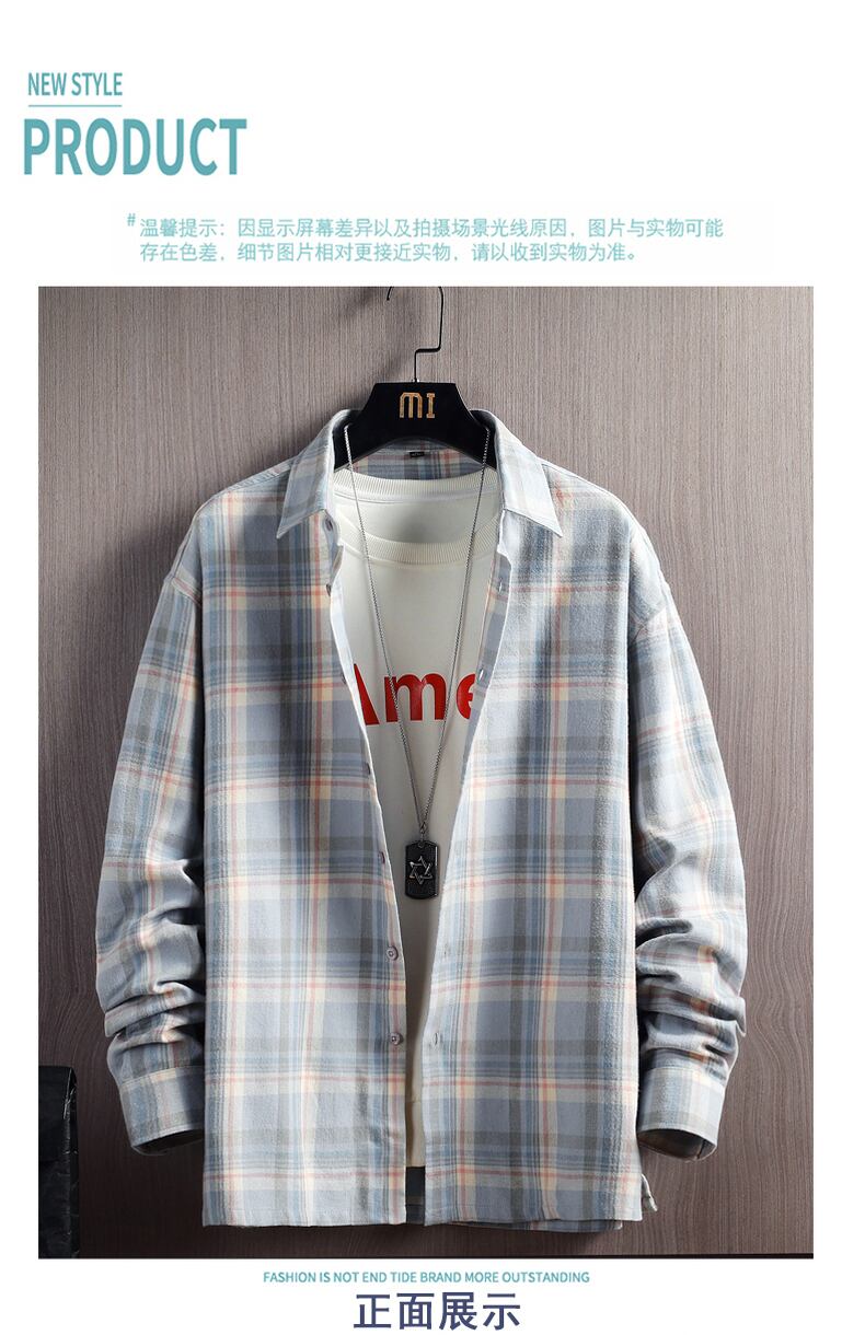 Long-sleeved plaid shirt men's summer youth slim shirt spring and autumn trend middle students handsome casual inch shirt ロング カジュアル スプリング 春物 サマー 夏物 オータム 秋物 スリム doushi84729811762