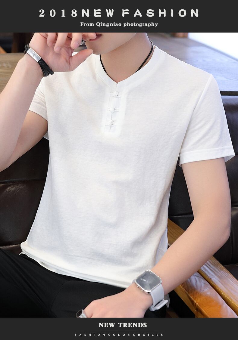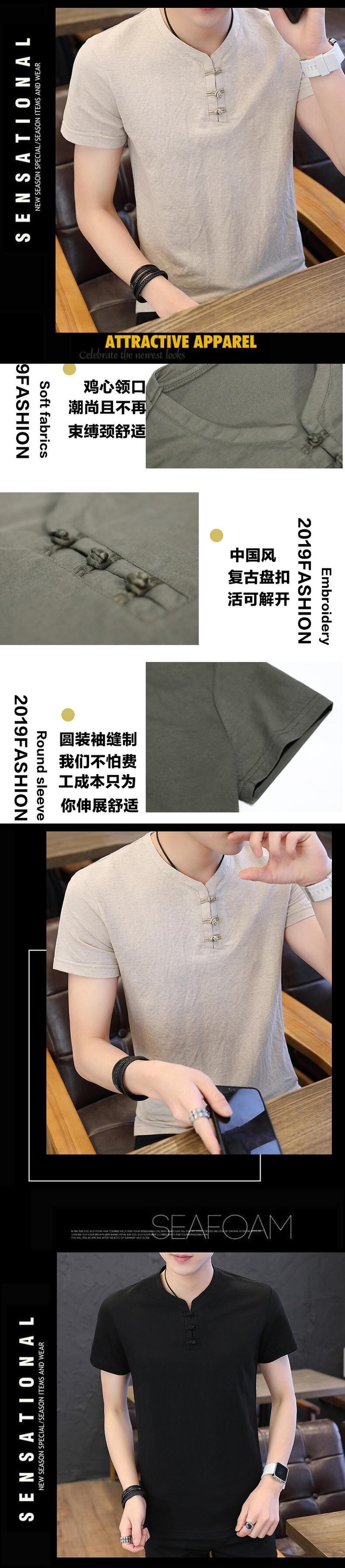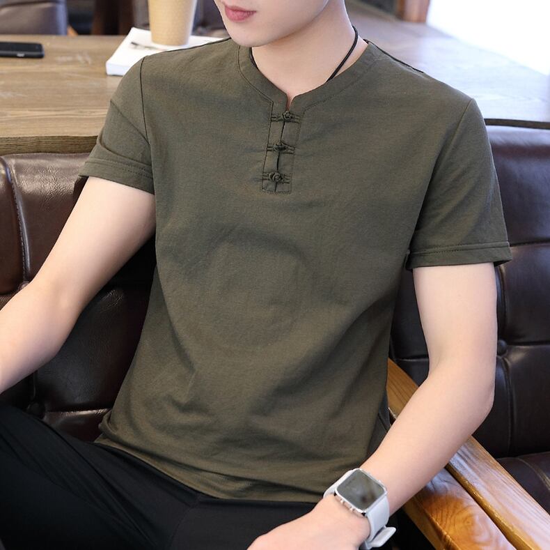 Men's short-sleeved t-shirt summer tide brand youth Buddhist men's retro Chinese style cotton and linen ancient style Hanfu Tang suit men コットン レトロ サマー 夏物 Tシャツ doushi56149440792
