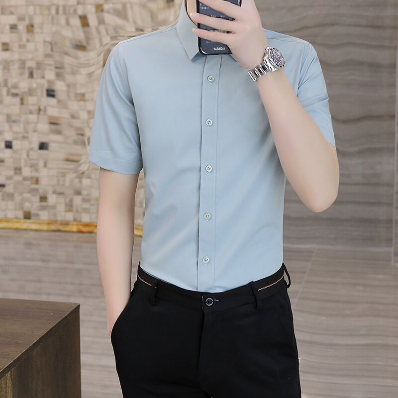 -end pendant summer bamboo fiber iron-free short-sleeved white shirt men's business shirt professional dress ice silk inch shirt ホワイト ペンダント サマー 夏物 シルク doushi65867649051