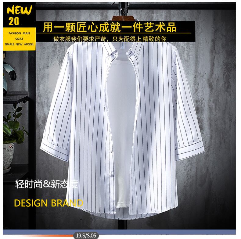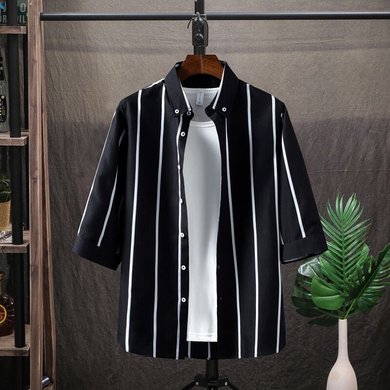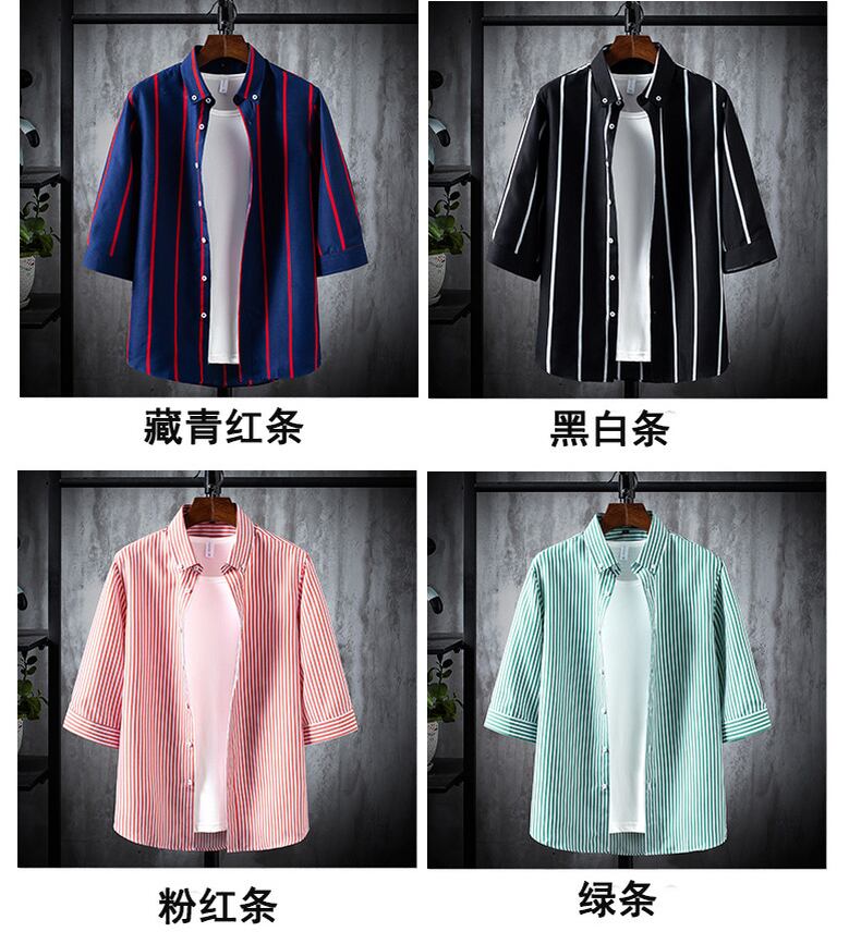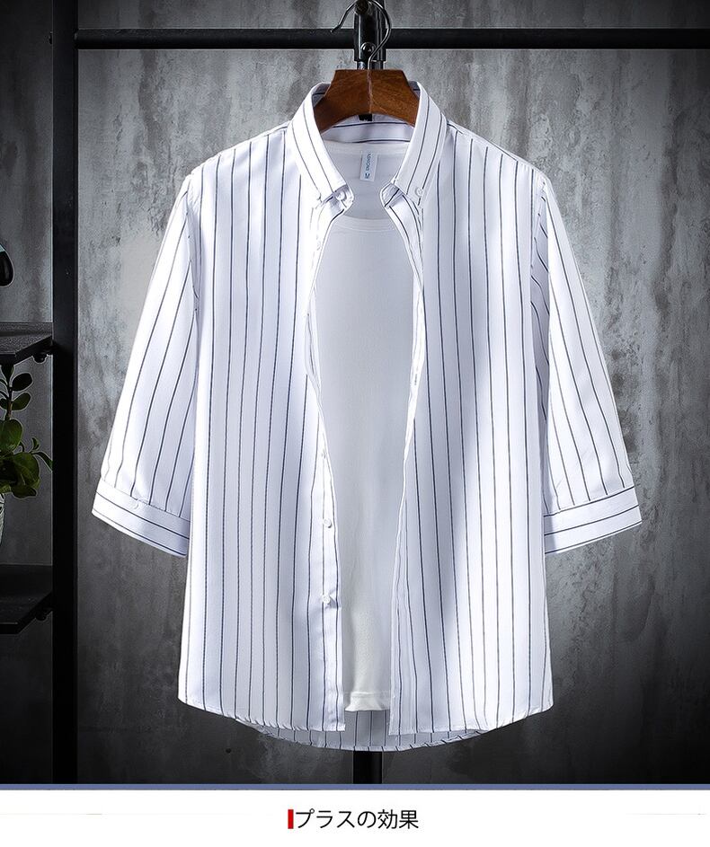 Striped shirt men's summer thin short-sleeved half-sleeved shirt trend casual three-quarter sleeve inch shirt long-sleeved top ロング カジュアル サマー 夏物 ストライプ doushi91286386332