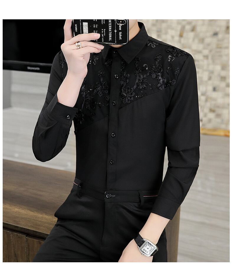 long-sleeved shirts men's 2022 new spring and autumn high-end embroidered shirts autumn jackets men's tops ロング レッド シャツ 刺繍 スプリング 春物 オータム 秋物 doushi77619567510