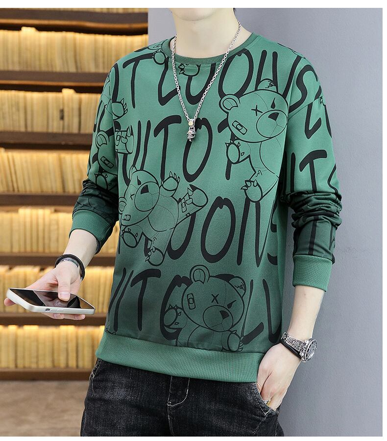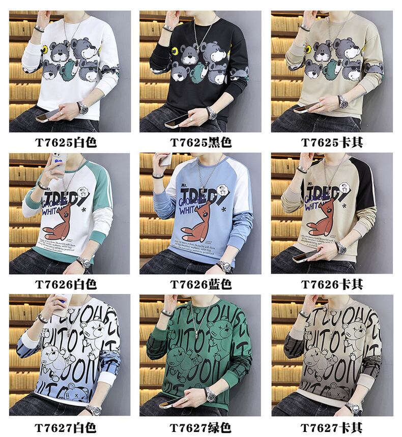Sweater men's 2022 spring and autumn round neck gradient top clothes students loose tide brand ins long-sleeved T-shirt spring clothes ロング スプリング 春物 オータム 秋物 Oネック Tシャツ doushi12608110267