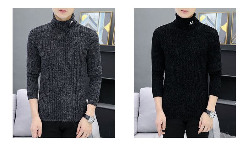 2022 autumn and winter new turtleneck sweater men's thickened chenille version trend black warm sweater ブラック オータム 秋物 ウィンター 冬物 doushi75723490039