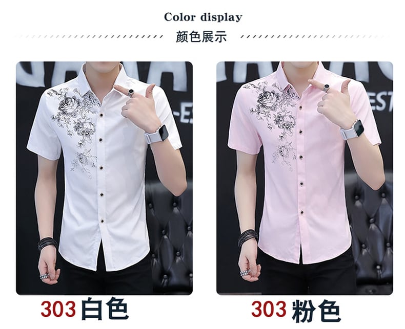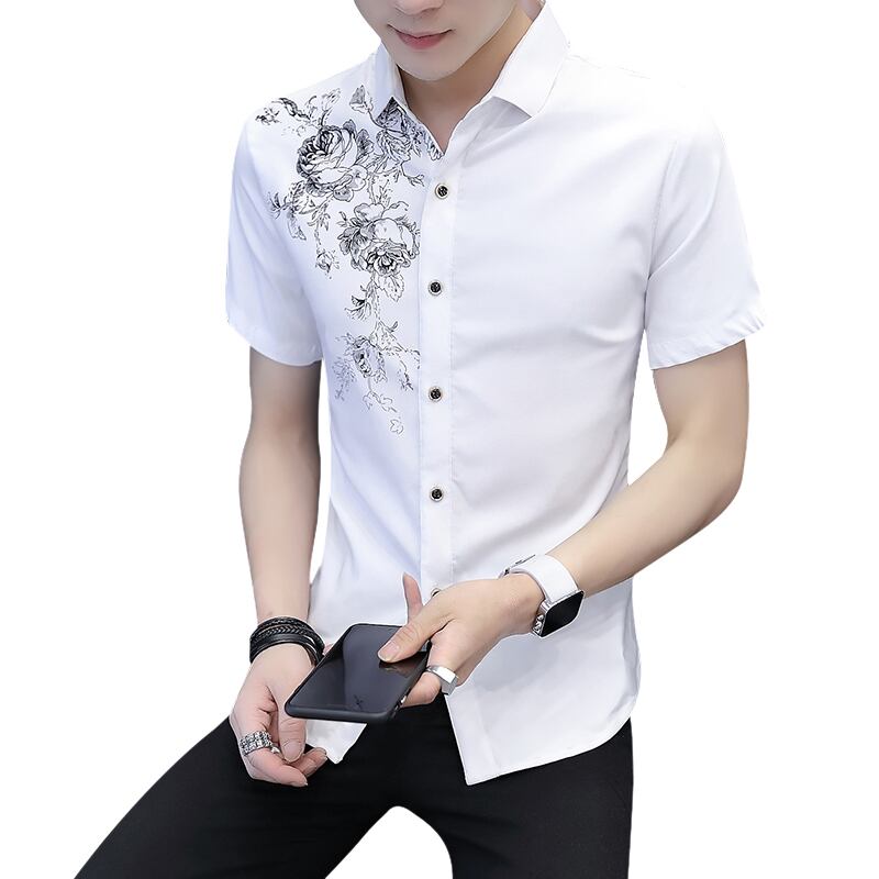2022 summer new short-sleeved shirt men's version casual slim printed shirt men's top student clothes trend プリント カジュアル サマー 夏物 スリム doushi30987806717