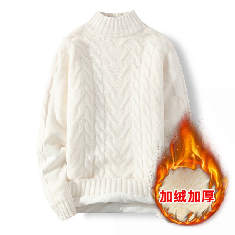 Plus velvet thick warm sweater men's autumn and winter semi-high collar loose and thick version trend Hong Kong style knitted bottoming shirt オータム 秋物 ウィンター 冬物 doushi26698525498