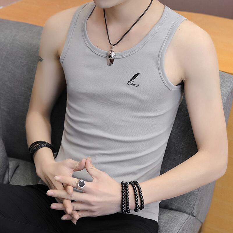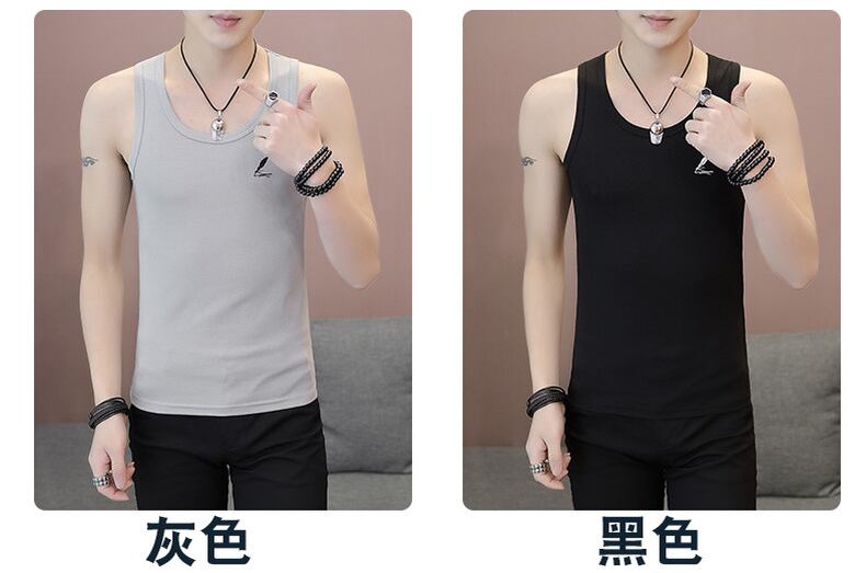 Summer cotton men's vest sports fitness hurdle stretch white sweat vest thin section youth bottoming shirt trend ホワイト コットン サマー 夏物 doushi46058667413