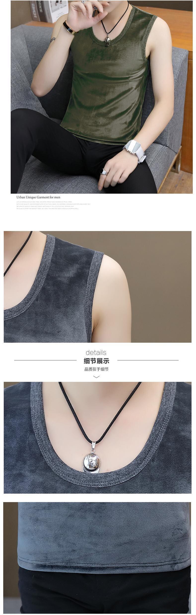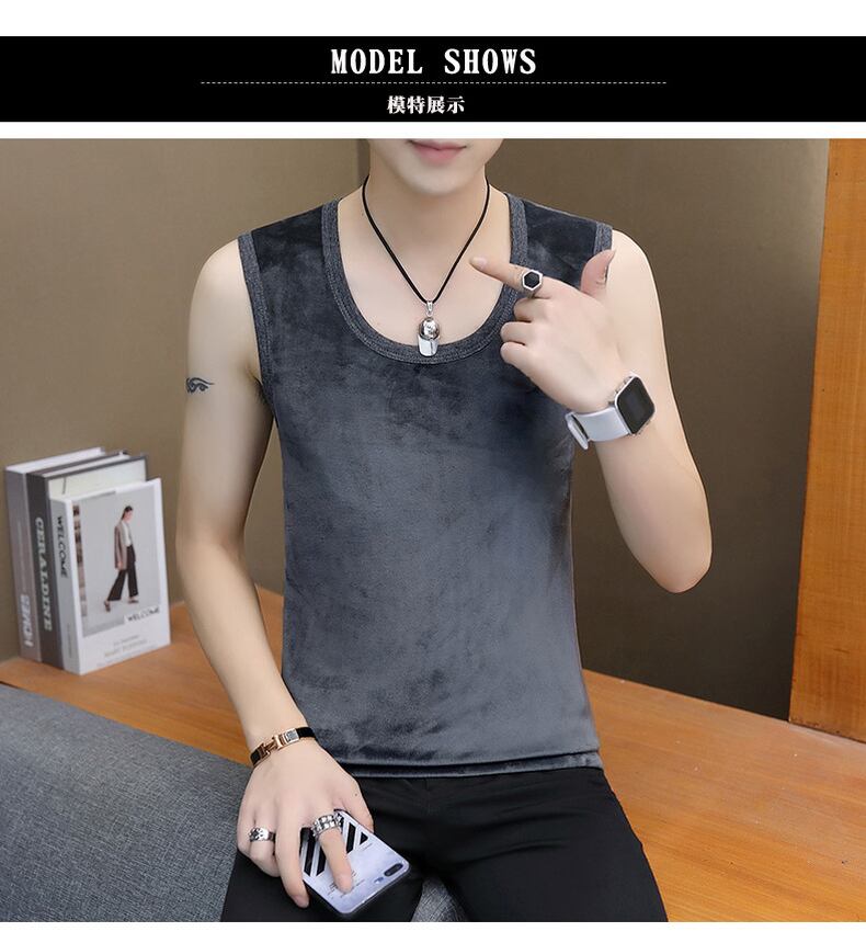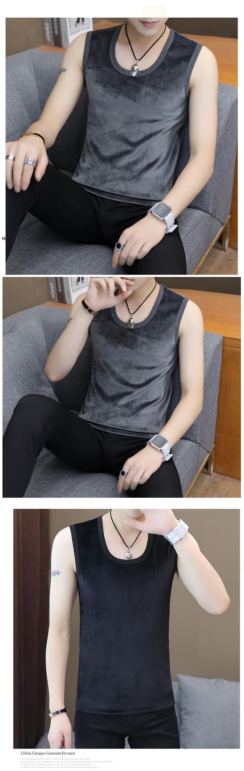 Winter warm bottoming vest men's plus velvet thick tide brand personality trend sleeveless T-shirt boys wear waistcoat ウィンター 冬物 ノースリーブ Tシャツ doushi59408375770