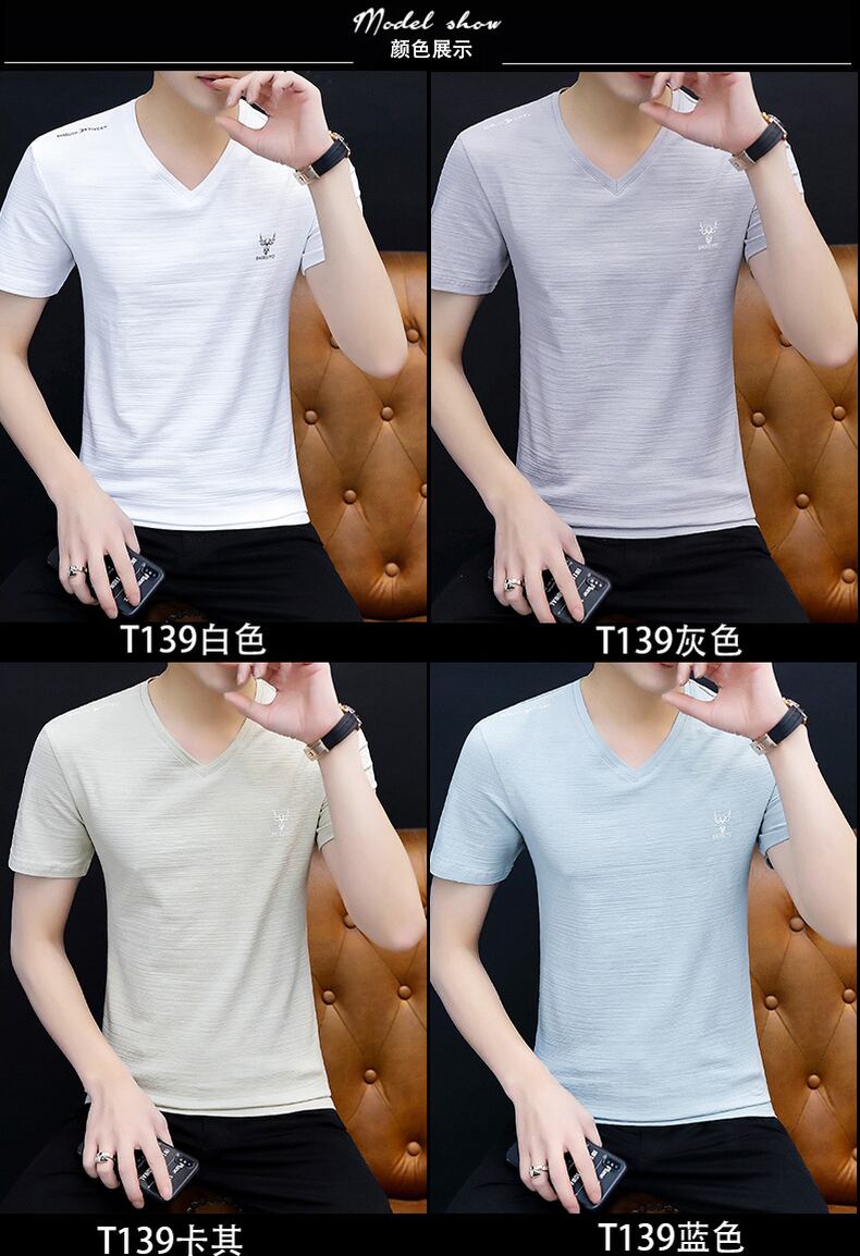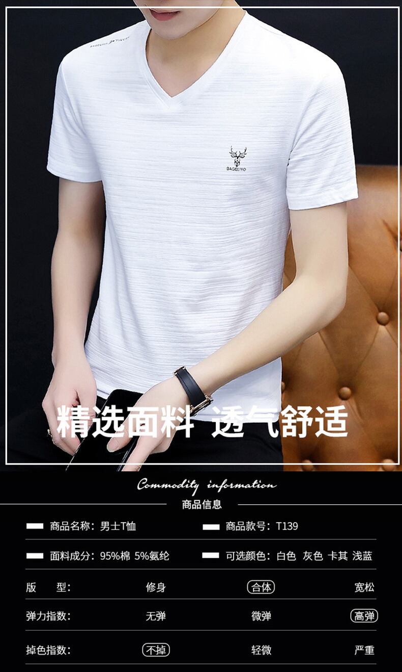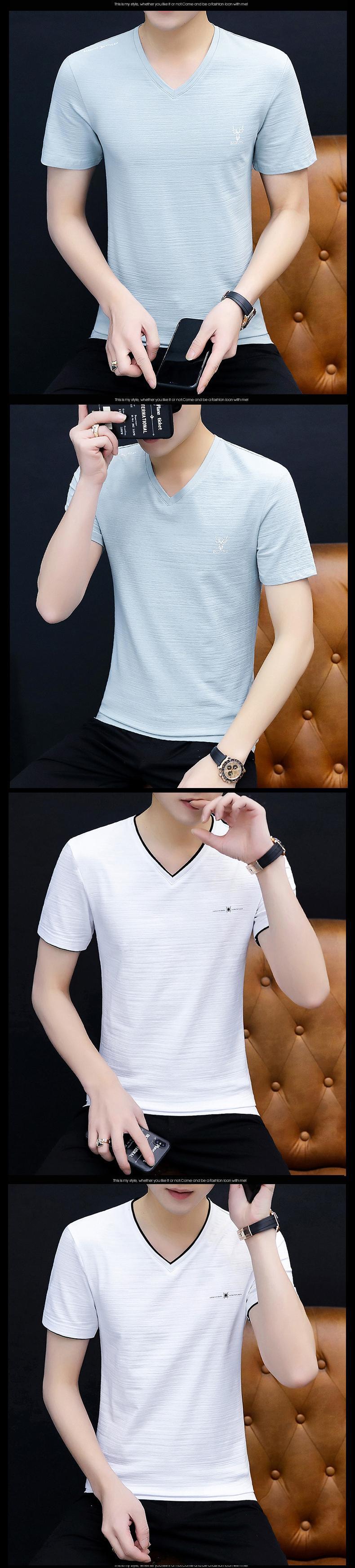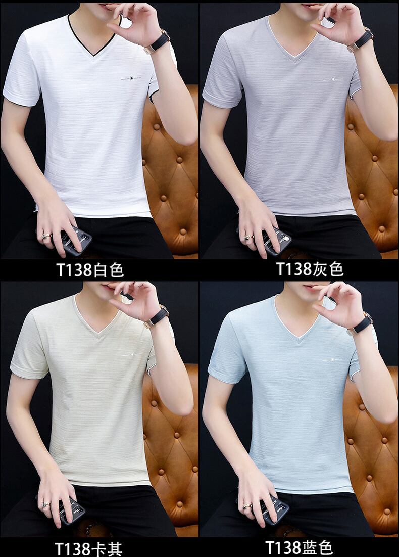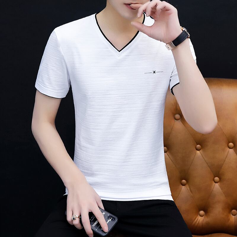 Summer white short-sleeved t-shirt men's half-sleeved men's 2022 new t-shirt top men's bottoming shirt v-neck clothes ホワイト サマー 夏物 Vネック Tシャツ doushi35645690949