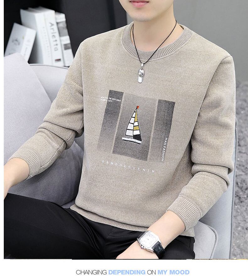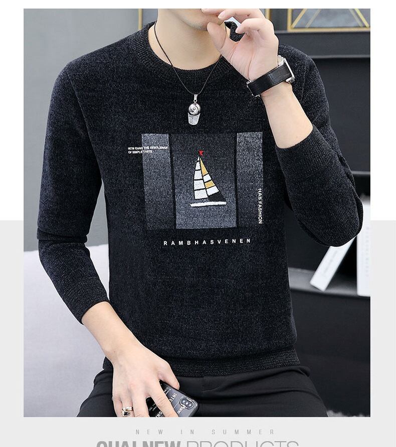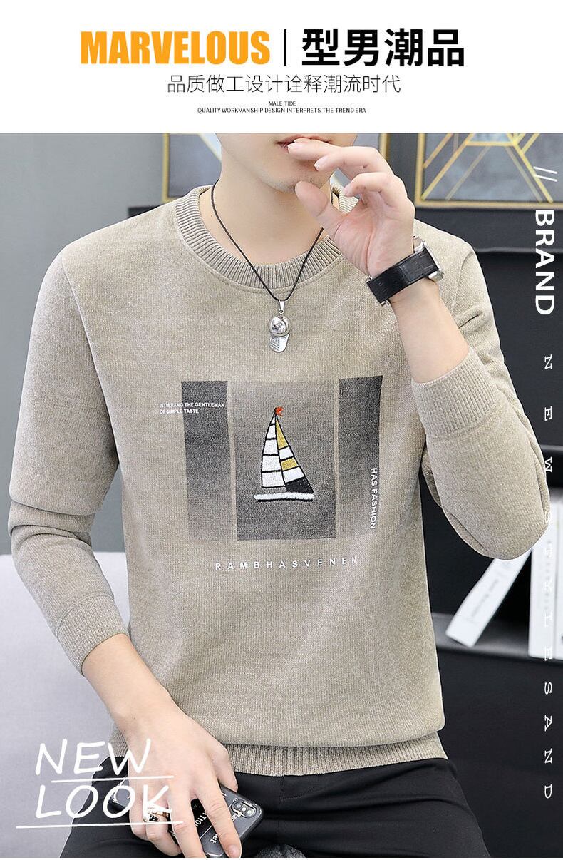 Chenille one-piece plus velvet thick warm sweater men's 2022 autumn and winter new trendy handsome knitted bottoming shirt オータム 秋物 ウィンター 冬物 doushi74876797840
