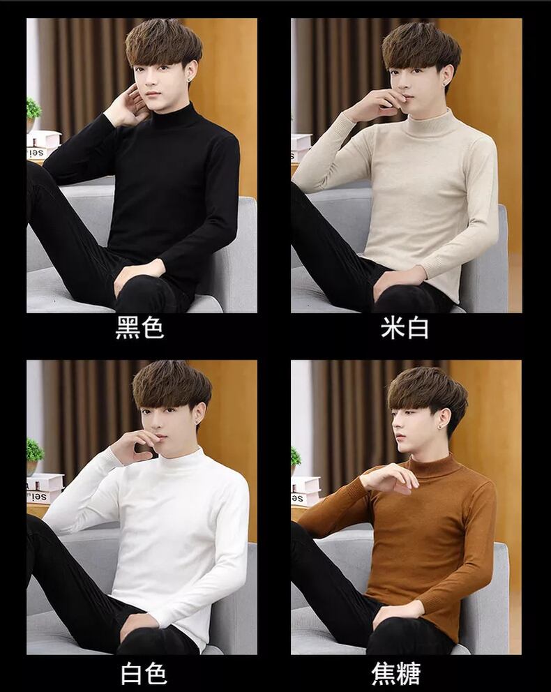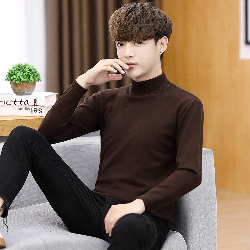 Men's Sweater Half Turtleneck Autumn and Winter Versatile Slim Knit Bottoming Shirt Pure Black Mid-neck Threader Trend Men's ブラック オータム 秋物 ウィンター 冬物 スリム ピュア doushi3502131922