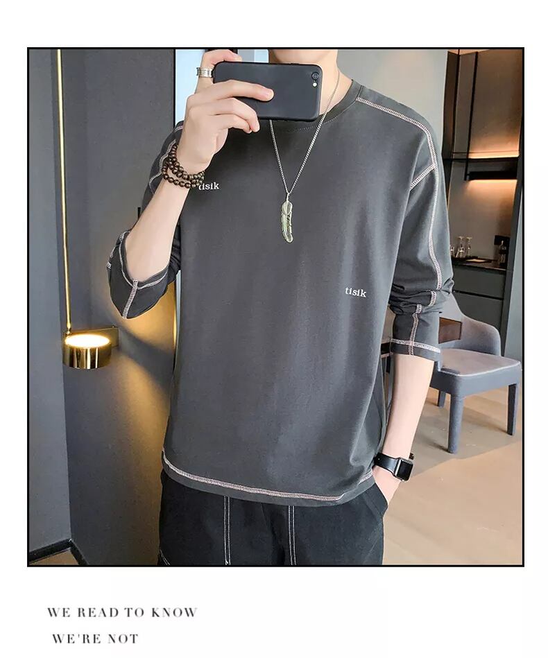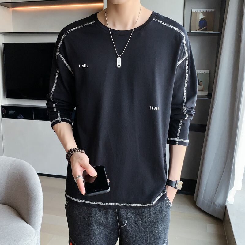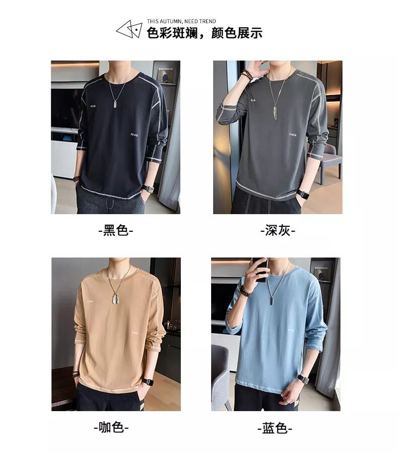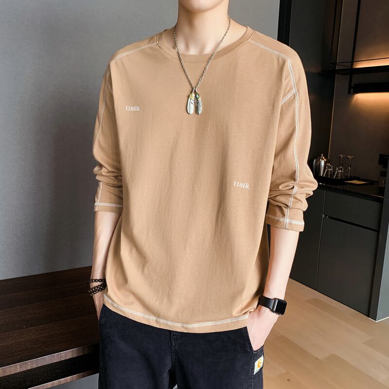 Men's t-shirt long-sleeved cotton thick autumn top trend ins loose all-match bottoming shirt tide brand sports sweater ロング コットン オータム 秋物 Tシャツ doushi28500221708