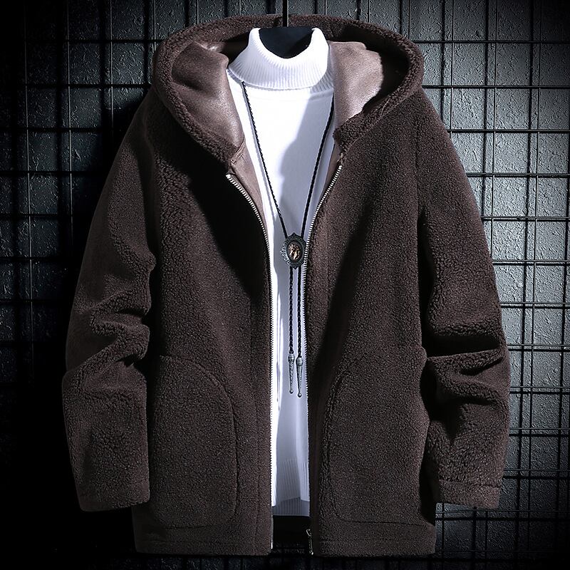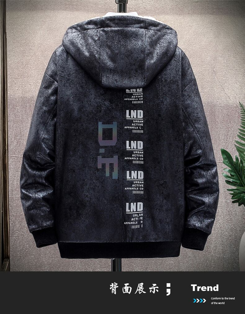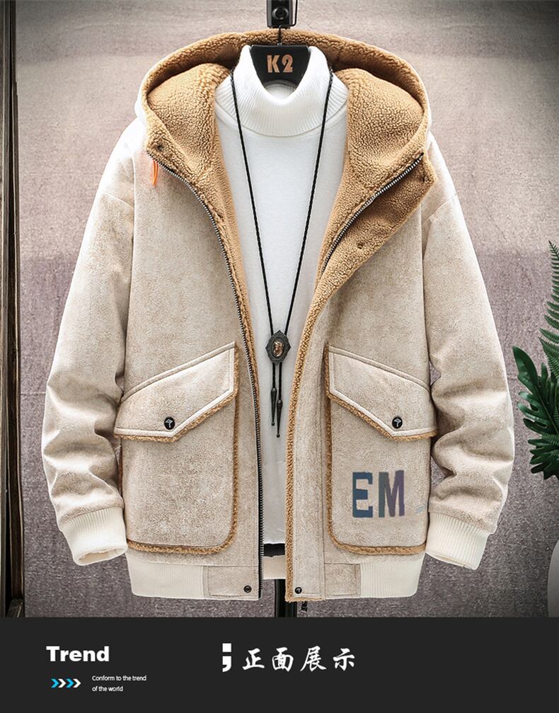 Padded men's 2022 autumn and winter new trend plus velvet warm jacket men's hooded lamb velvet winter jacket オータム 秋物 ウィンター 冬物 doushi75702185978