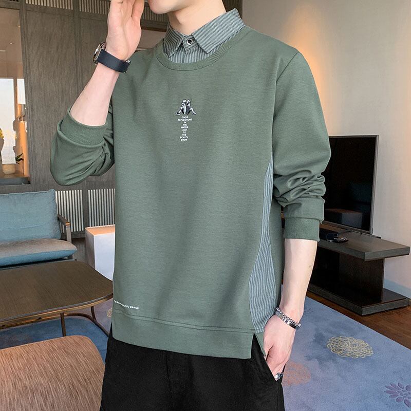 Autumn and winter vacation two-piece sweater men's two-piece trend shirt collar clothes student loose autumn clothes with collar オータム 秋物 ウィンター 冬物 doushi96596700514