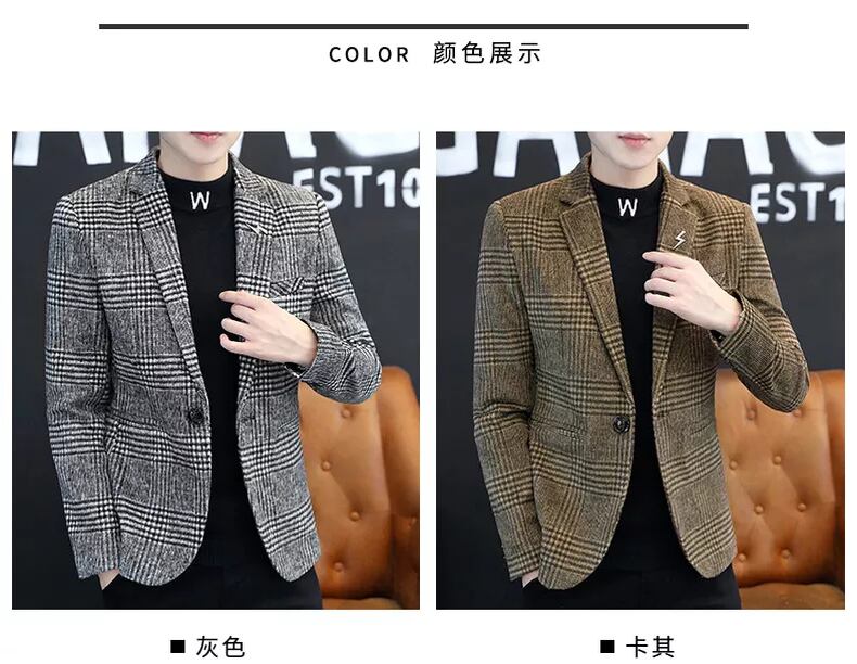 Autumn and winter plus velvet small suit men's version of the trend of self-cultivation youth handsome business casual plaid suit jacket カジュアル オータム 秋物 ウィンター 冬物 doushi49730613644