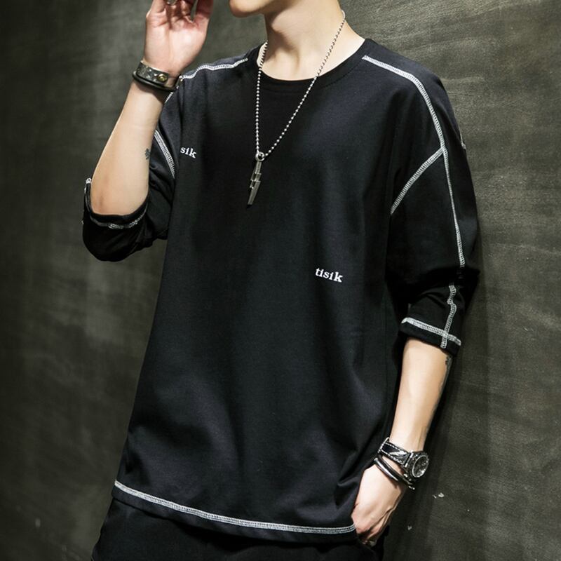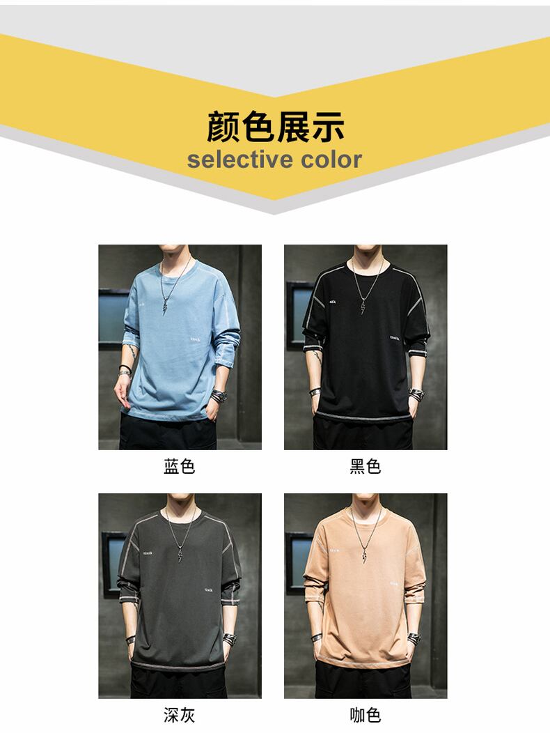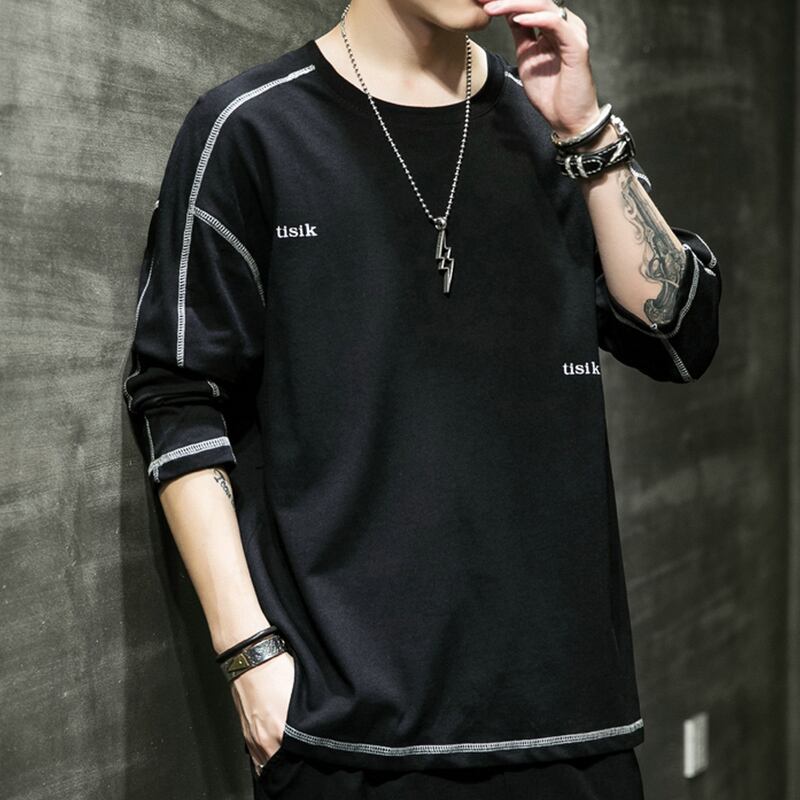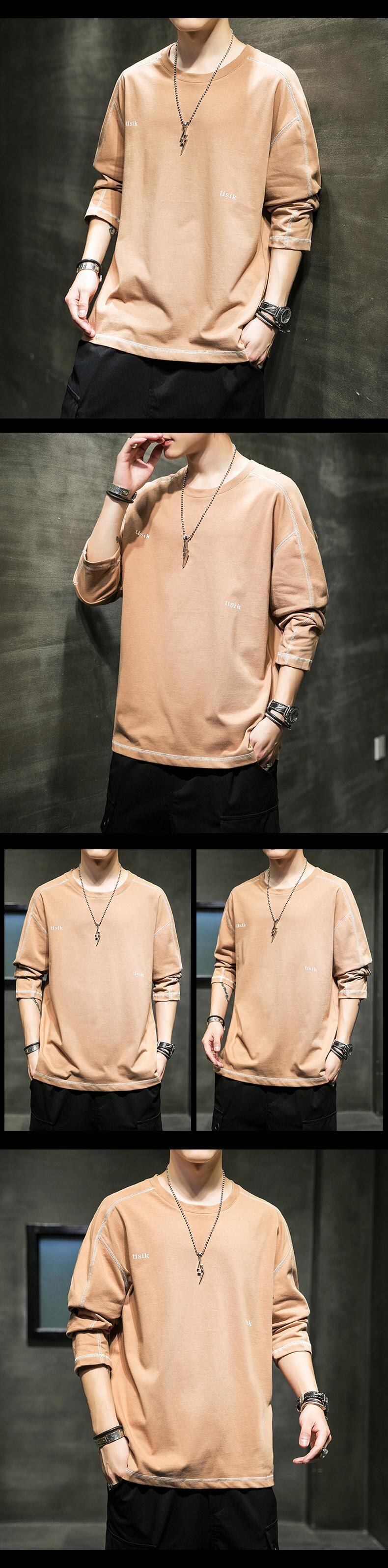 Men's long-sleeved t-shirt cotton spring thin autumn clothes top ins loose t-shirt bottoming shirt tide brand sports sweater ロング コットン スプリング 春物 オータム 秋物 Tシャツ doushi86921856597