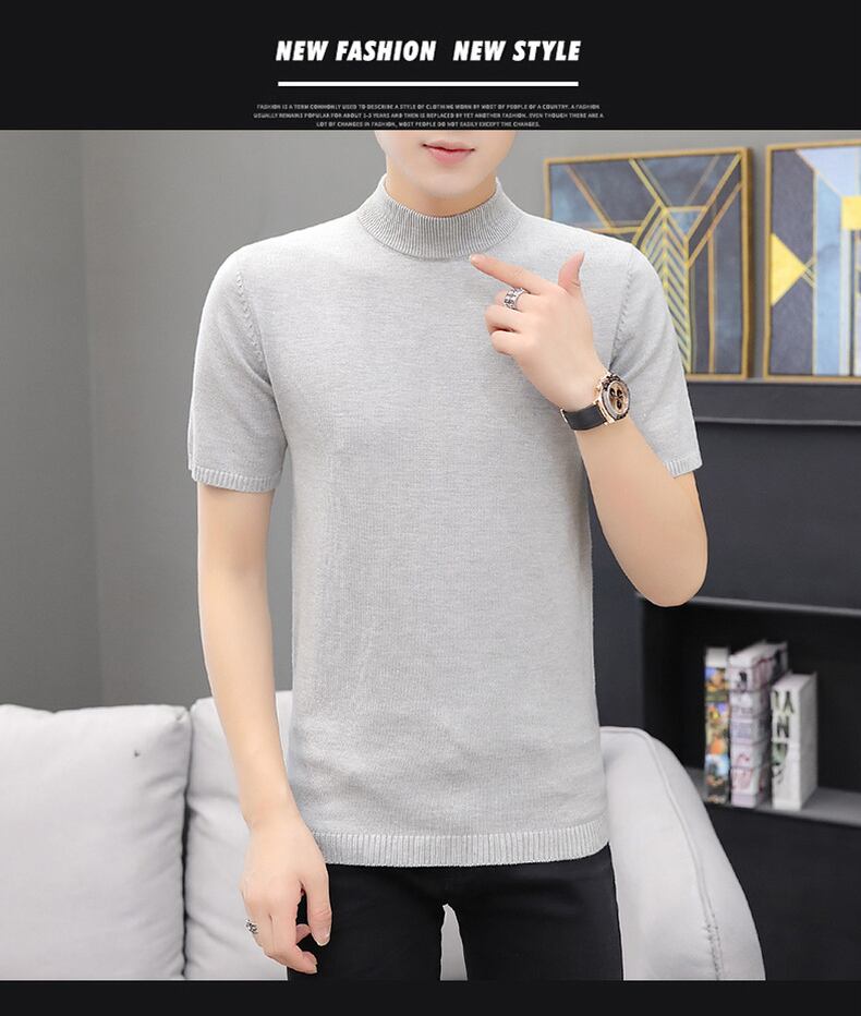 2022 autumn short-sleeved t-shirt men's new half high-neck men's bottoming shirt knitted sweater half-sleeve mid-neck solid color sweater オータム 秋物 Tシャツ ソリッドカラー doushi80067117532