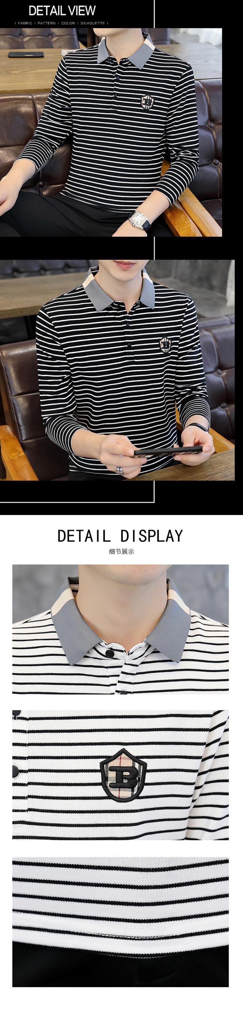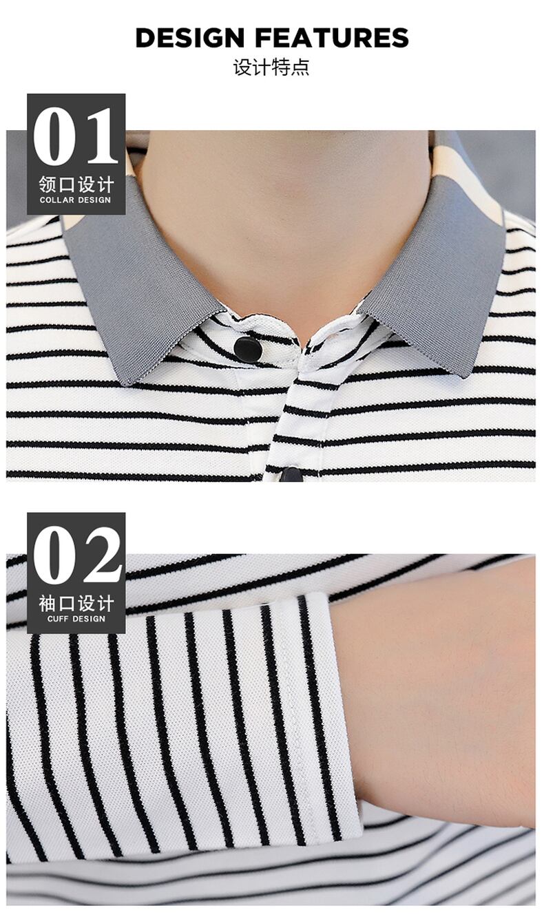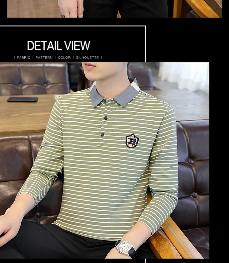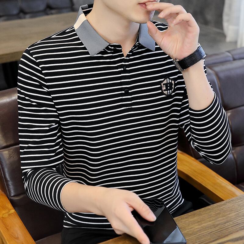 Autumn trend striped men's long-sleeved t-shirt cotton clothes lapel Polo shirt men's decoration body collar bottoming shirt ロング コットン オータム 秋物 ストライプ Tシャツ doushi97983911670