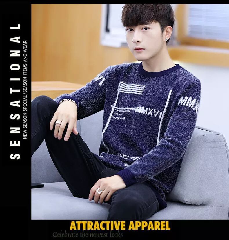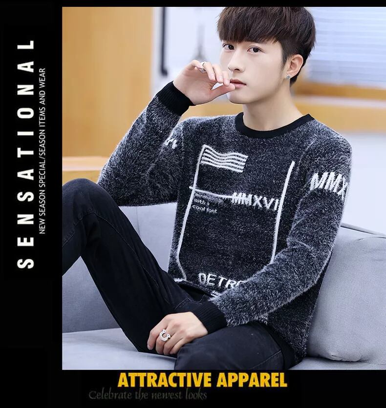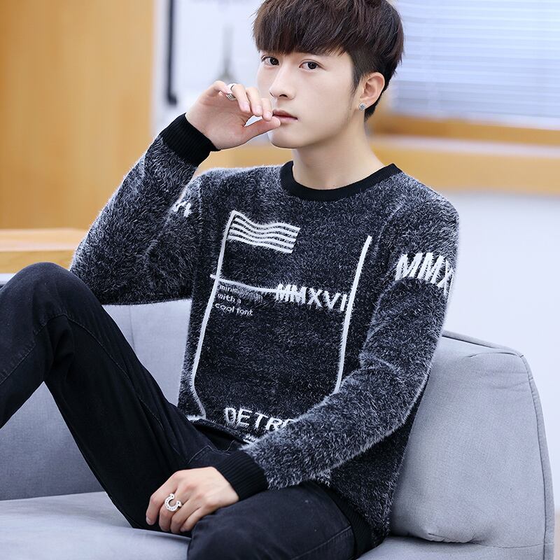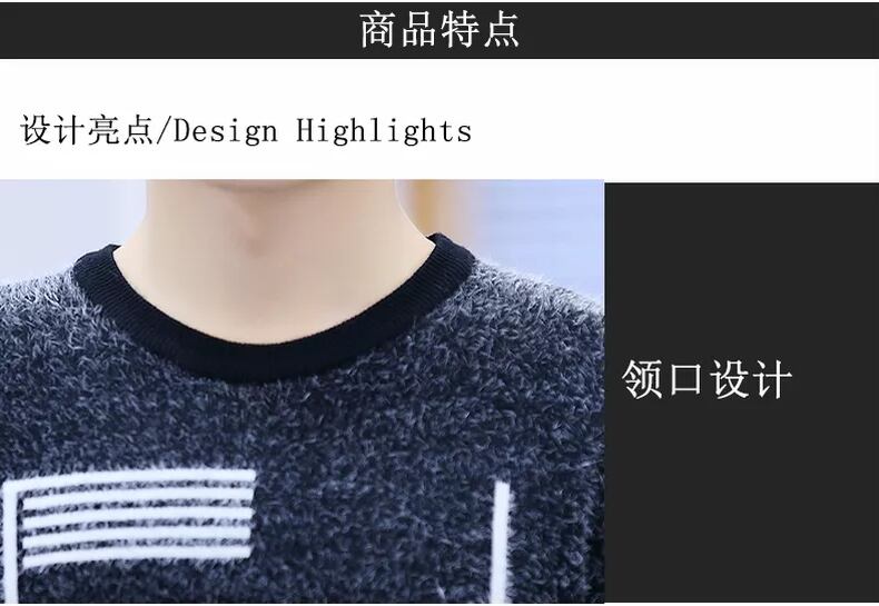 Mink fleece wool sweater men's version plus velvet thick warm clothes autumn and winter bottoming shirt trend line clothing personality オータム 秋物 ウィンター 冬物 doushi34346995512