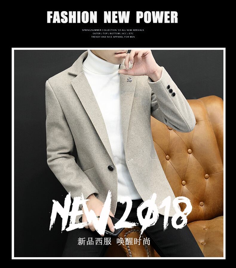 Autumn and winter plus velvet thick woolen small suit men's version of the casual single Western shirt trend woolen suit jacket trend カジュアル オータム 秋物 ウィンター 冬物 doushi20133879549