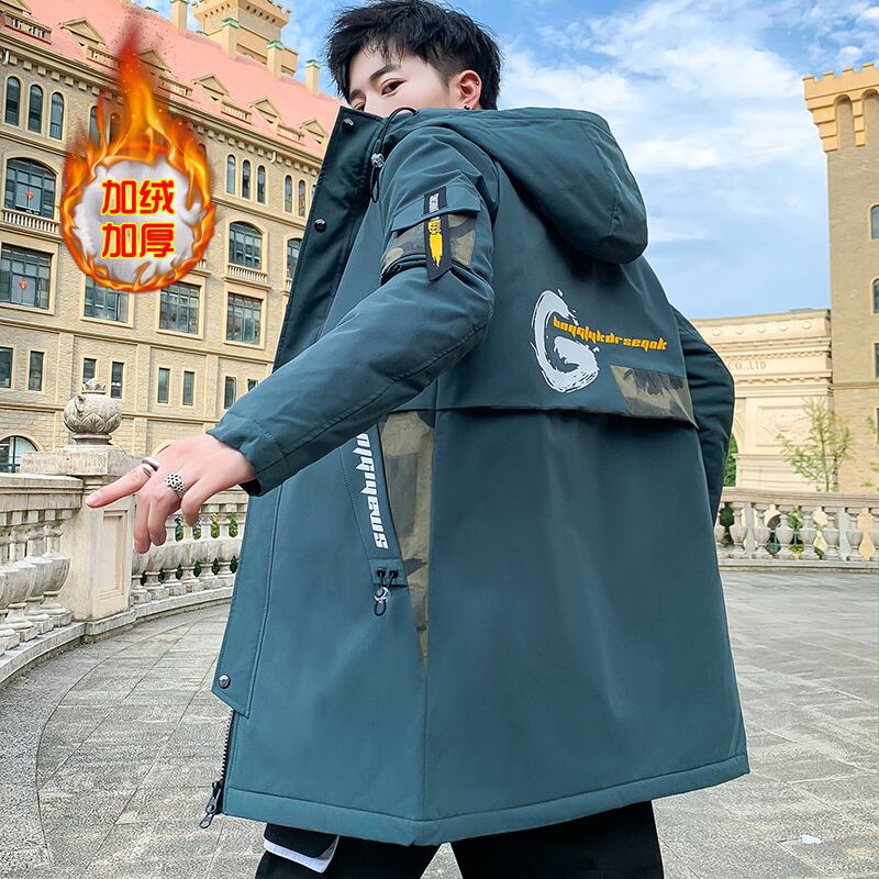Jacket men's 2022 new autumn and winter fleece thickened outer clothes version trend mid-length windbreaker men's jacket オータム 秋物 ウィンター 冬物 doushi70066402004
