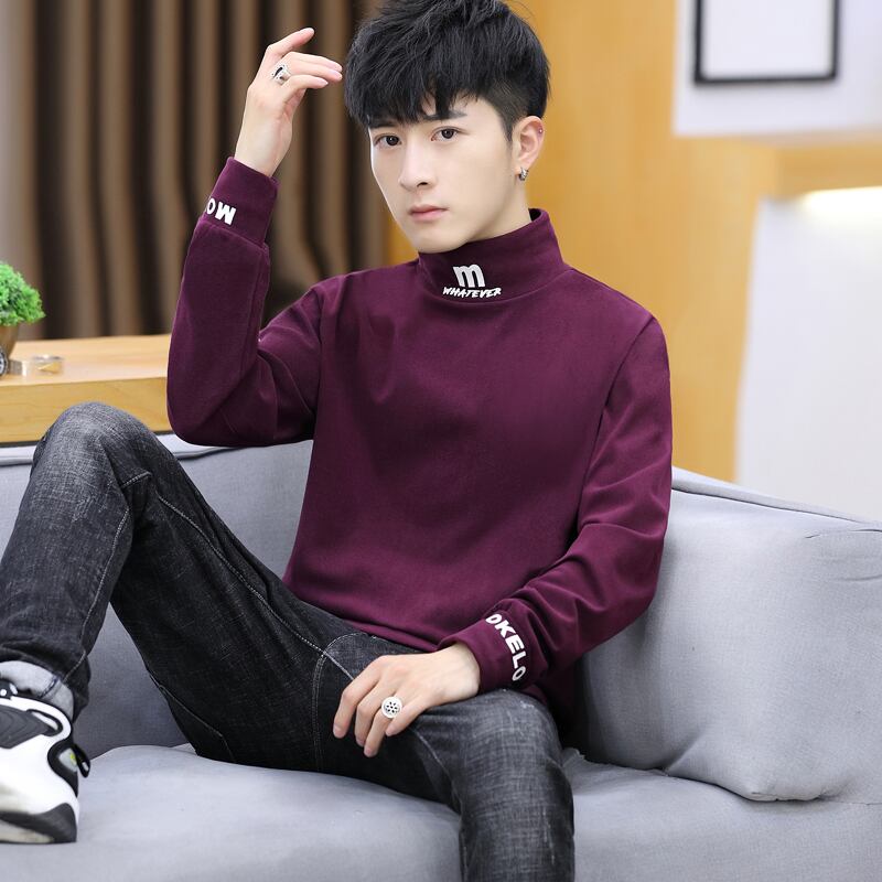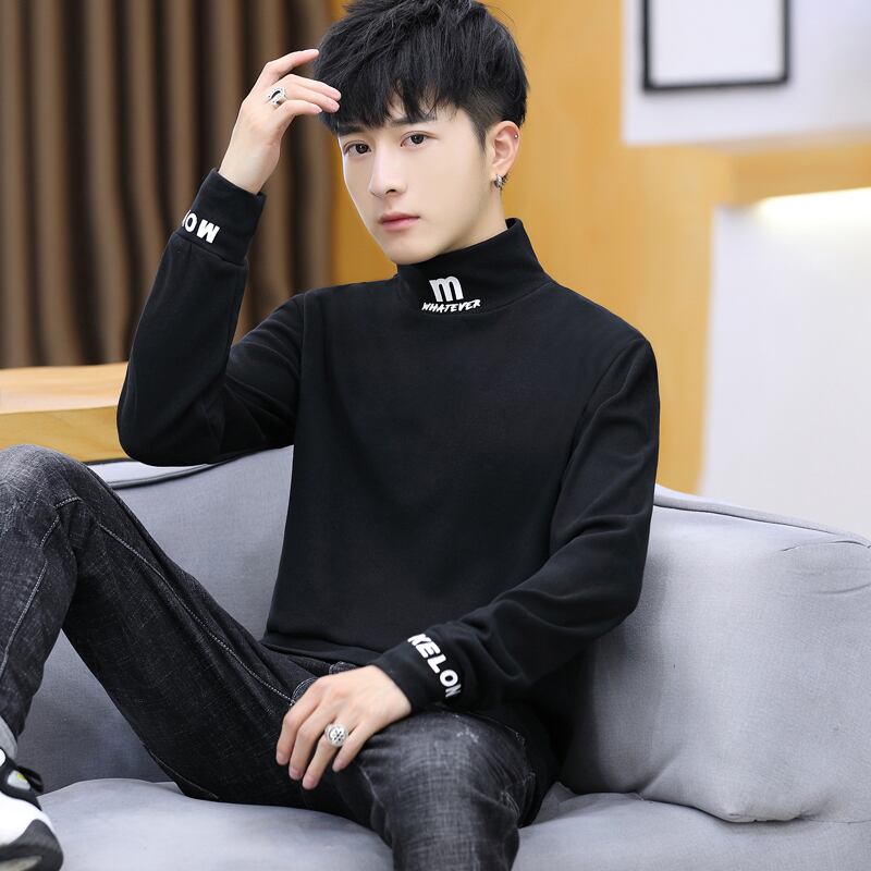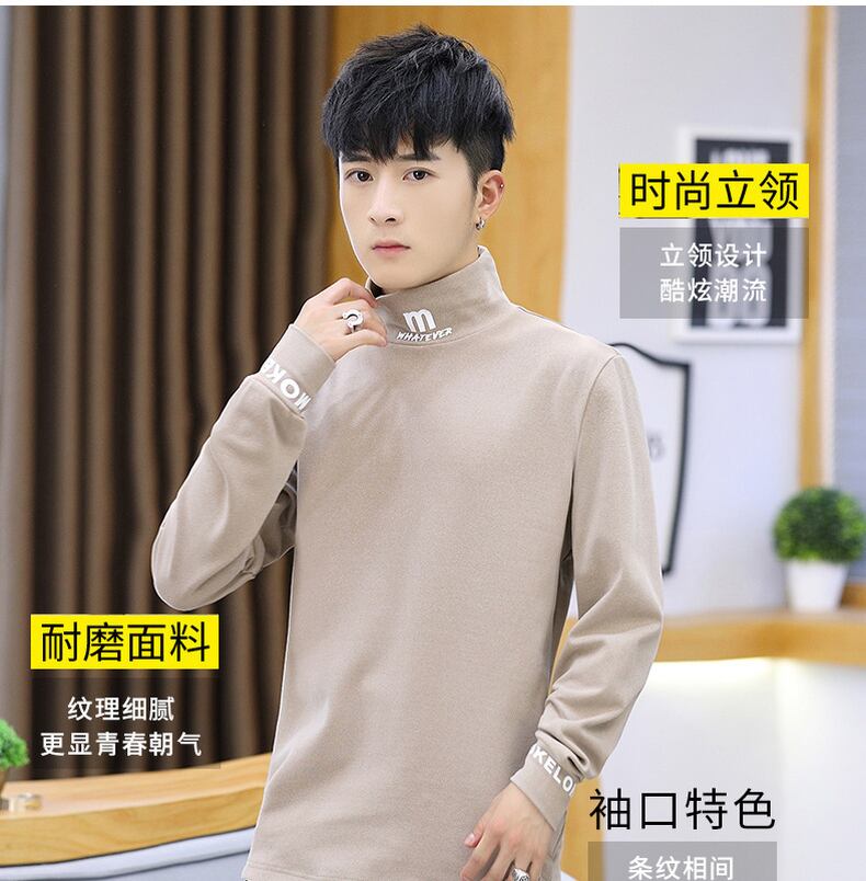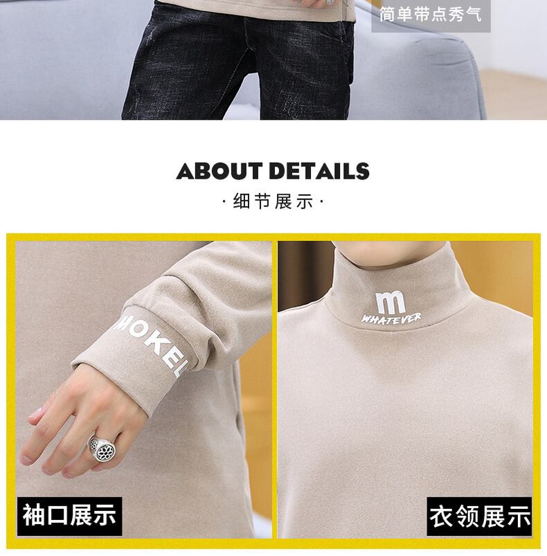 Autumn and winter half high-neck long-sleeved T-shirt men's youth trend plus velvet mid-neck sweater student inner bottoming shirt thickening ロング オータム 秋物 ウィンター 冬物 Tシャツ doushi57072354854