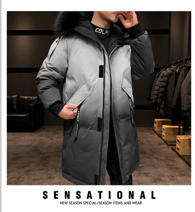Padded men's winter coat hooded 2022 new trend thickened gradient cotton clothing tide brand medium and long padded jacket ロング コットン ウィンター 冬物 doushi26382292780
