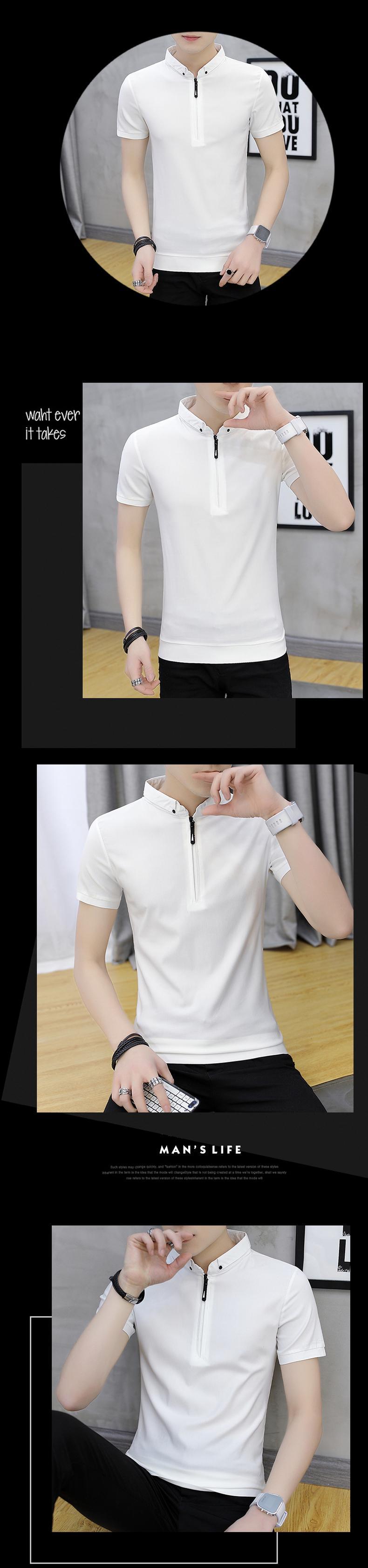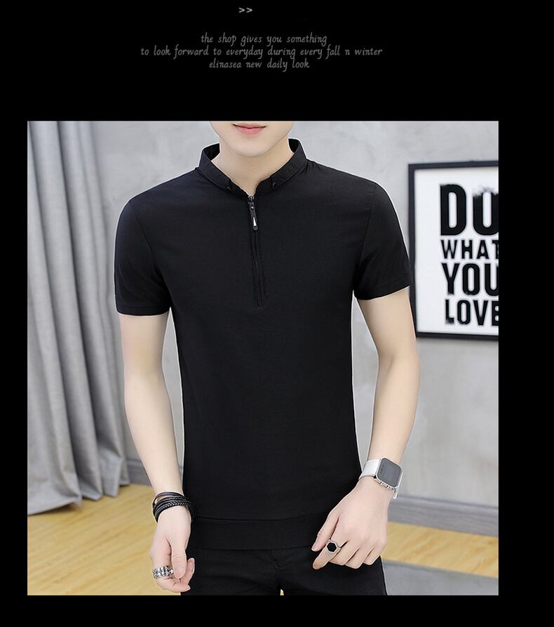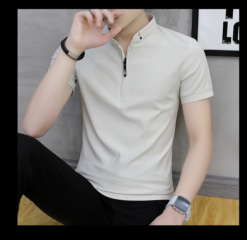Men's short-sleeved t-shirt stand collar summer thin ice silk men's 2022 new cotton trend casual polo shirt men コットン カジュアル サマー 夏物 シルク Tシャツ doushi91648790438