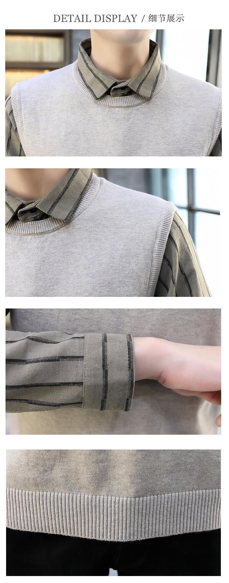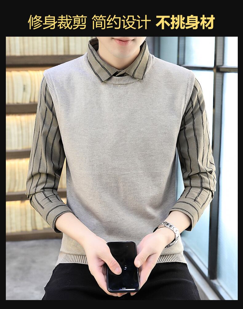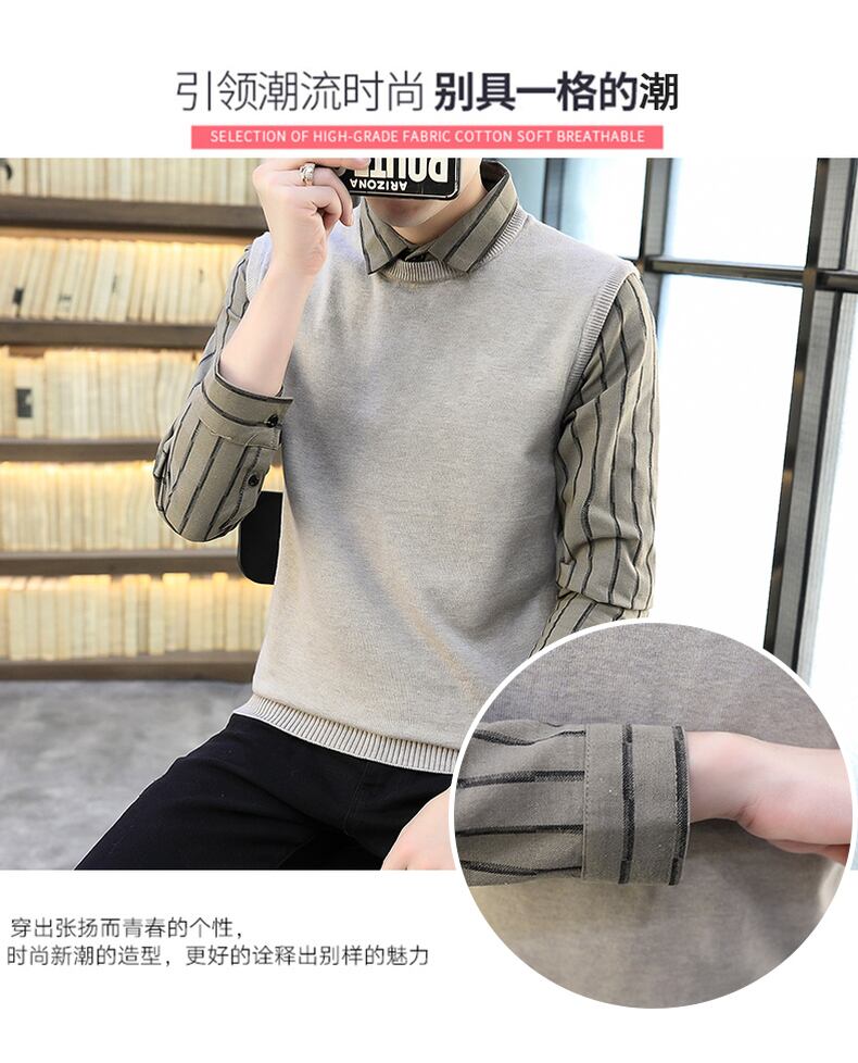 Shirt collar sweater men's spring and autumn plus velvet thick knitted bottoming shirt version of the trend fake two winter sweaters スプリング 春物 オータム 秋物 ウィンター 冬物 doushi9472186832